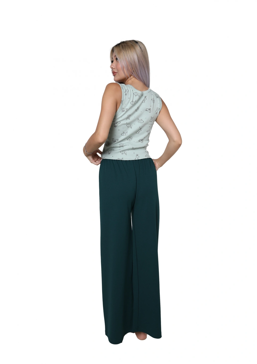 Çamaşır Kenti markasının şık tasarımıyla öne çıkan Kadın Kalın Askılı Body Bol Paça Pantolon 2`li Takım Su Yeşili, tarzınızı yansıtacak harika bir kombin seçeneği sunuyor.
