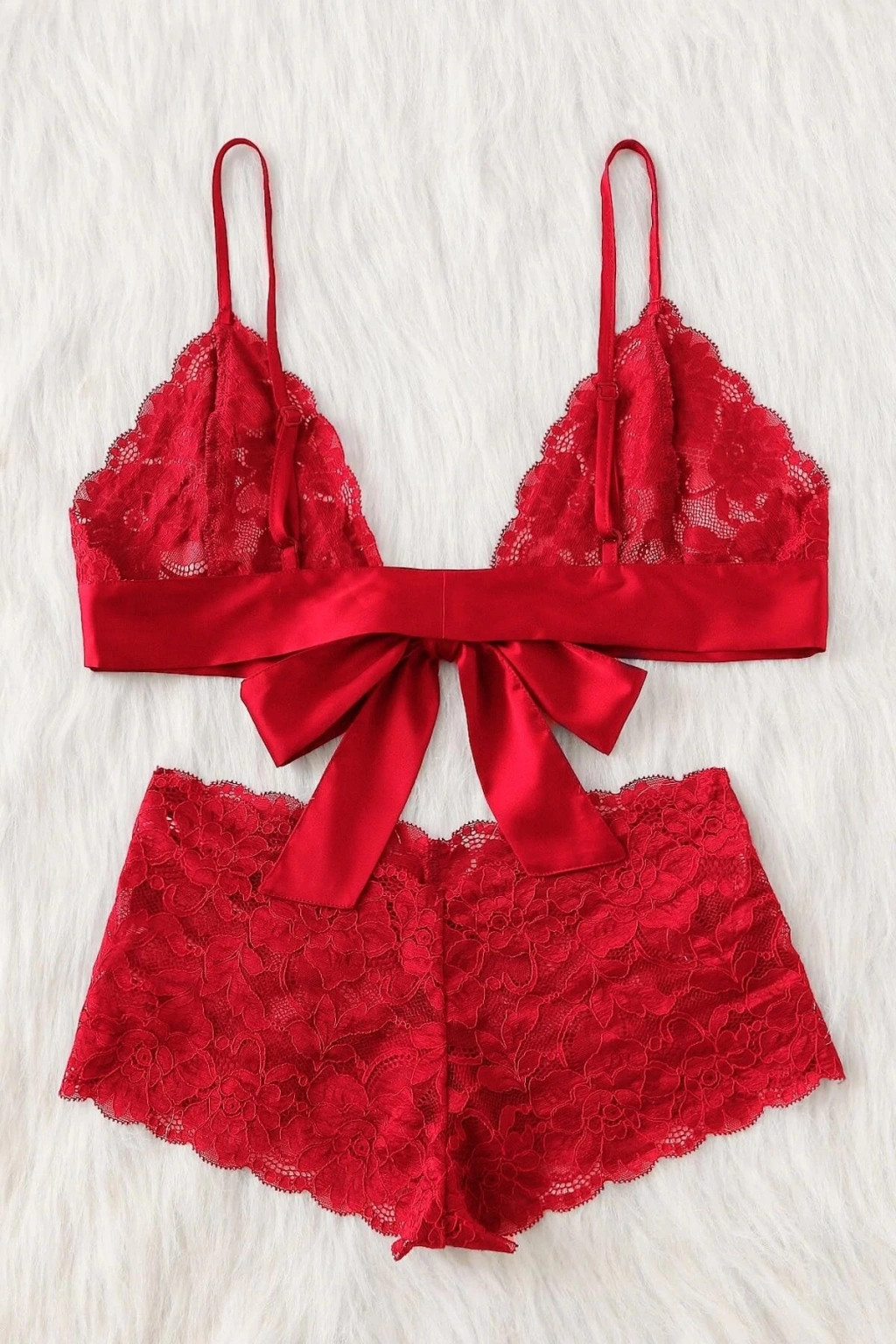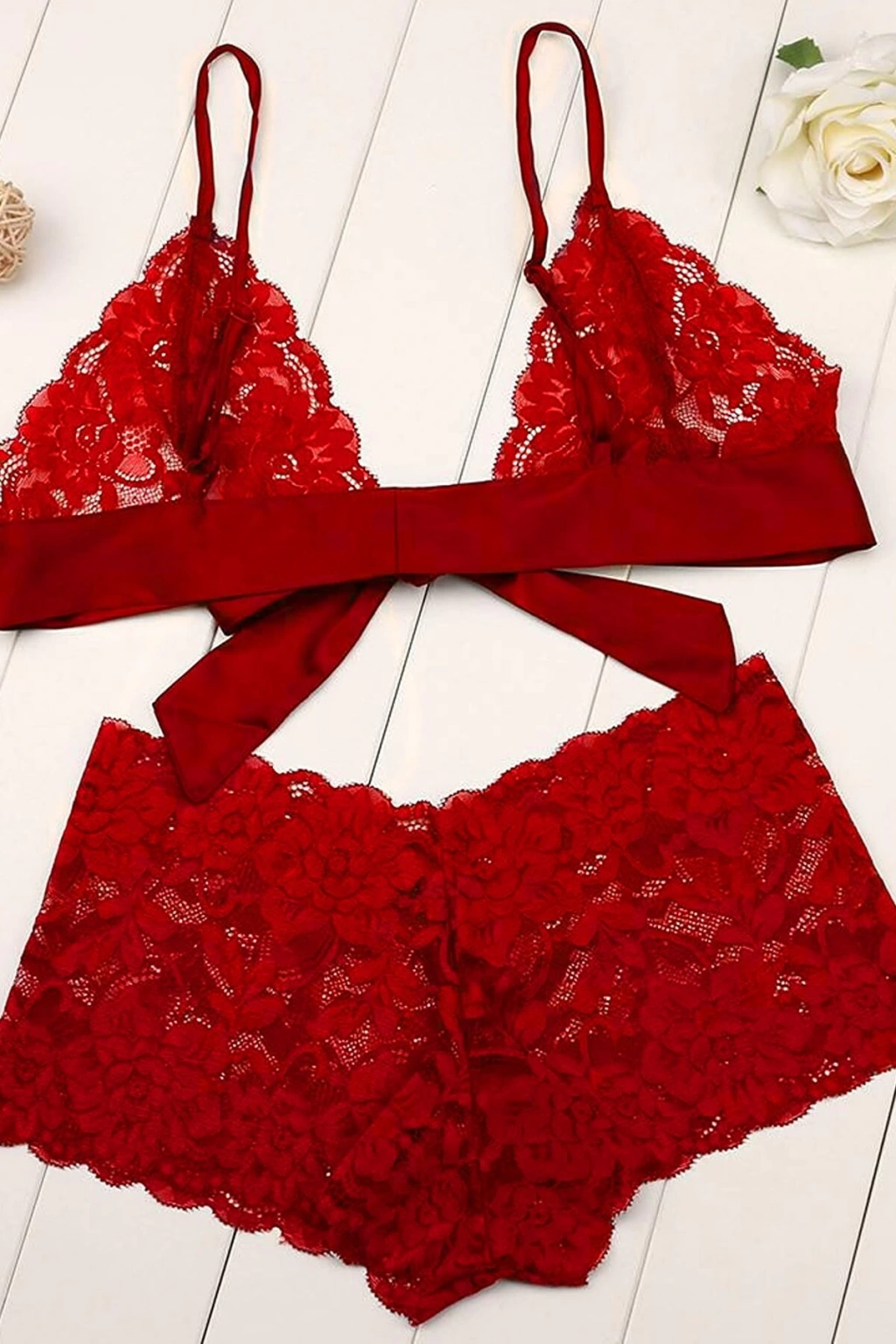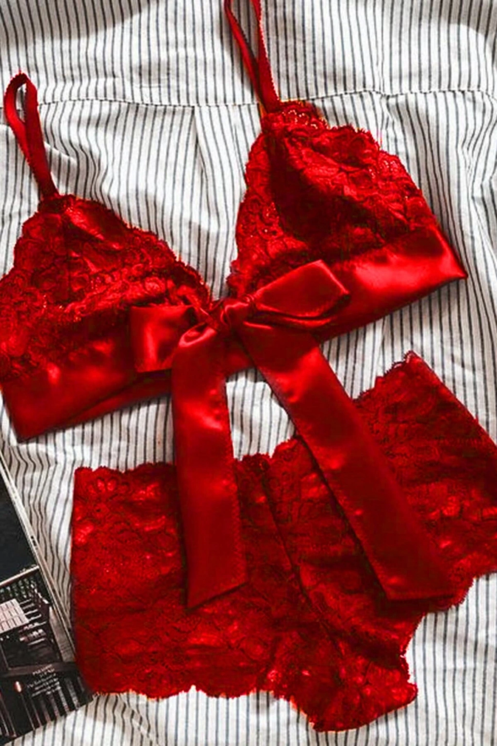 MARSiLYAN- Kadın Kırmızı Dantelli & Kurdelalı Sütyen Külot Takımı