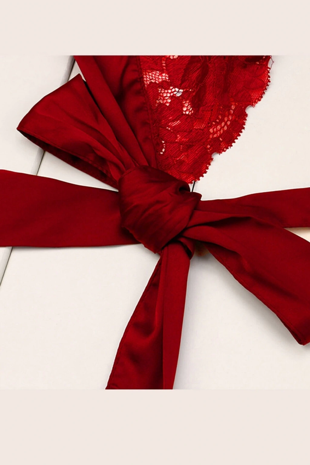 Kadın Kırmızı Fantezi Gecelik Tül Fiyonk detaylı Yanları Dekolteli 2160