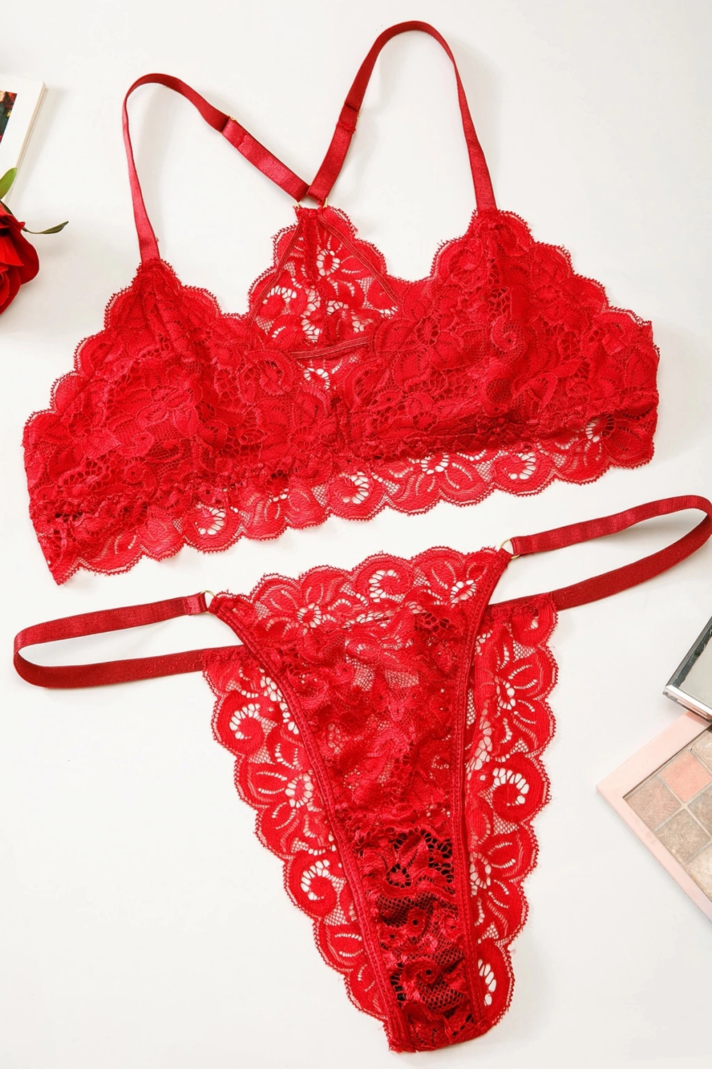MARSiLYAN- Kadın Kırmızı Sırtı Dantel ve İp Detaylı Şık Sütyen Külot Takımı