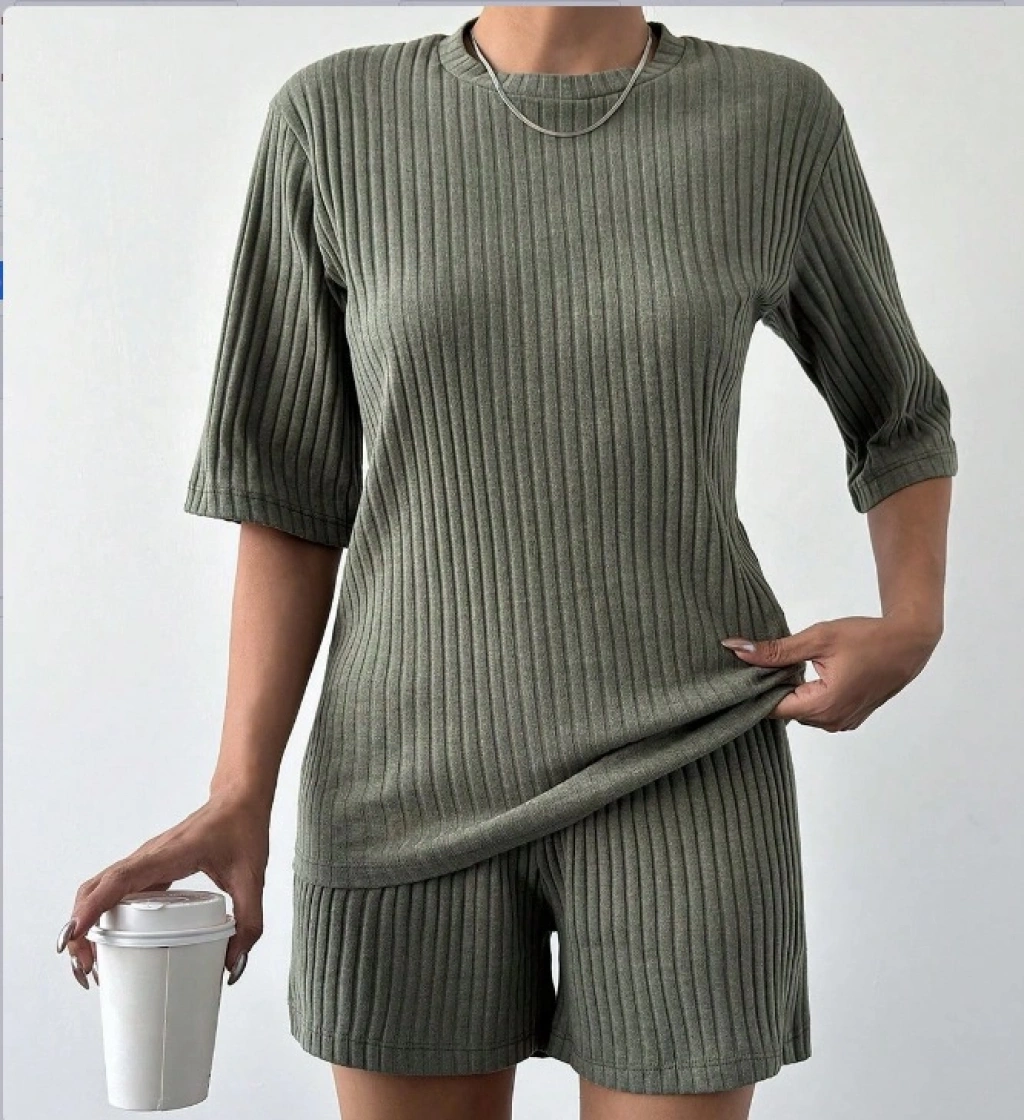 Kadın Kısa Kollu Bisiklet Yaka Kaşkorse Bluz şort Ikili Takım