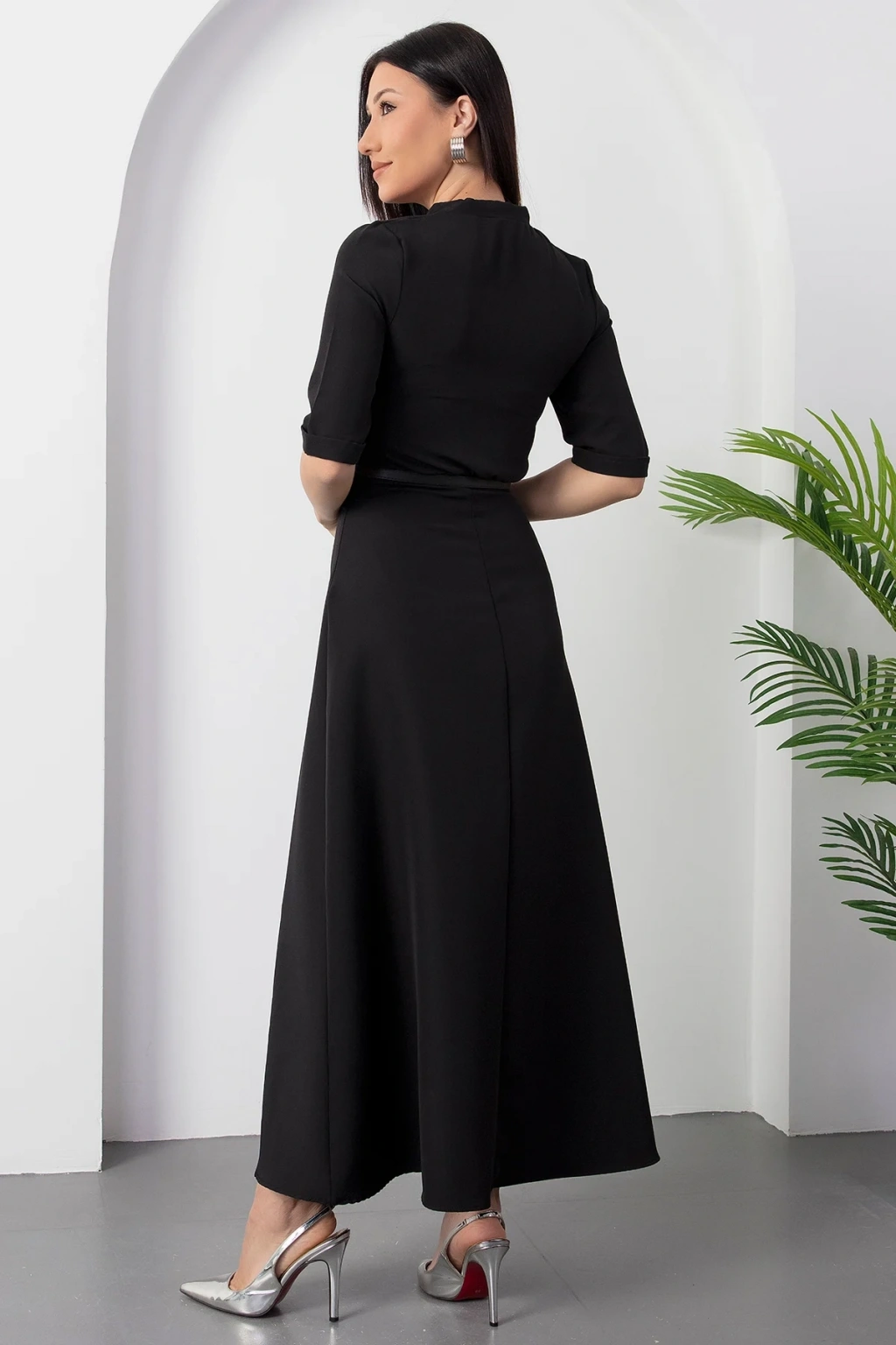 MARSiLYAN- Kadın Kısa Kollu Fular Ve Kemer Detay önden Yırtmaçlı Maxi Boy Elbise