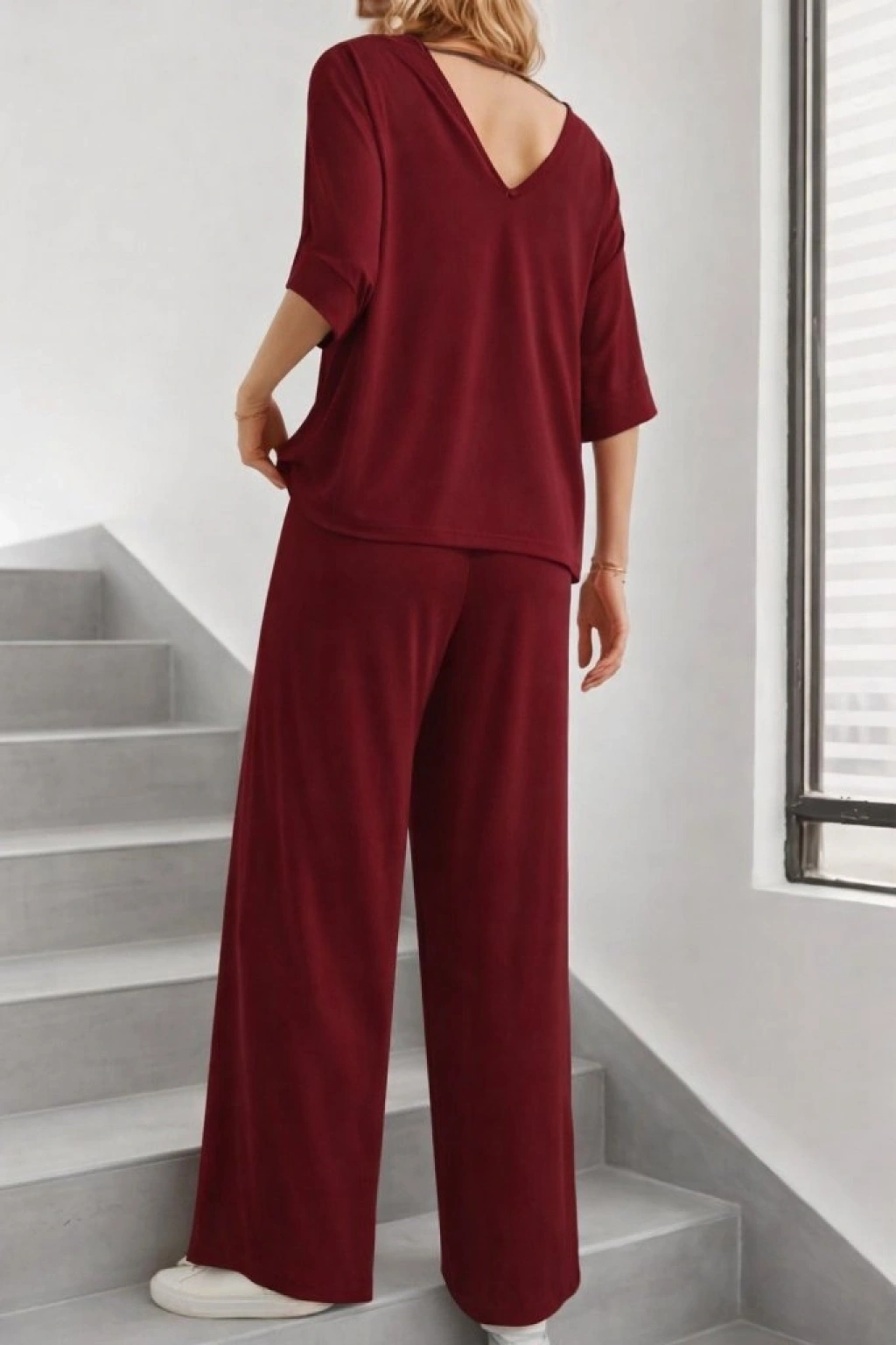 Kadın Kısa Kollu V Yakalı Viskon Bluz Ve Pantolon Ikili Takım
