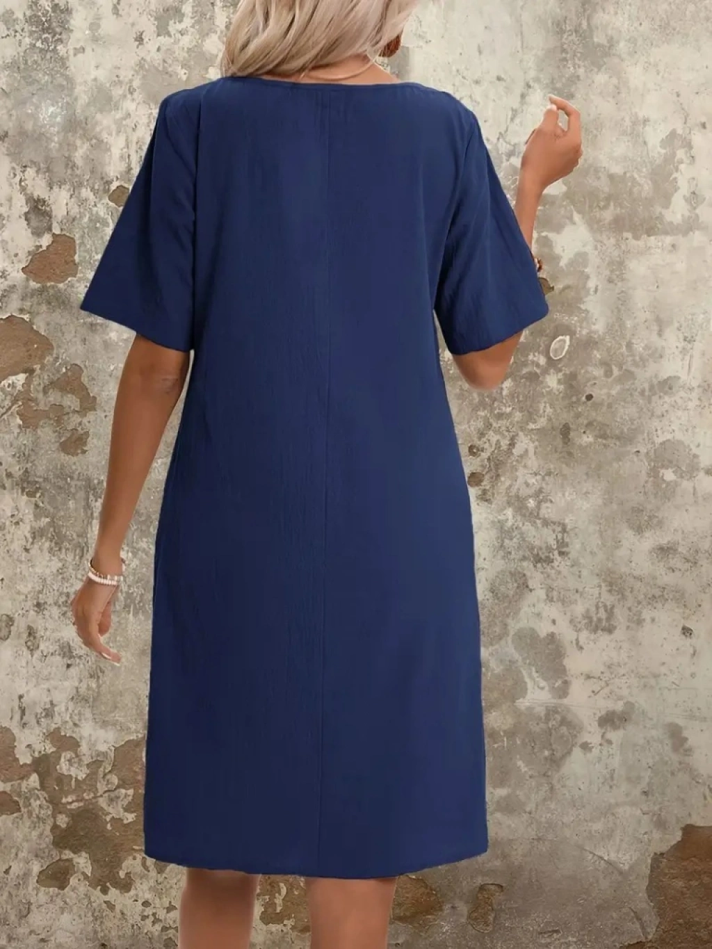 Kadın Kısa Kollu Yakası Açık önden Büzgülü Cep Detaylı Viskon Iki Iplik Elbise