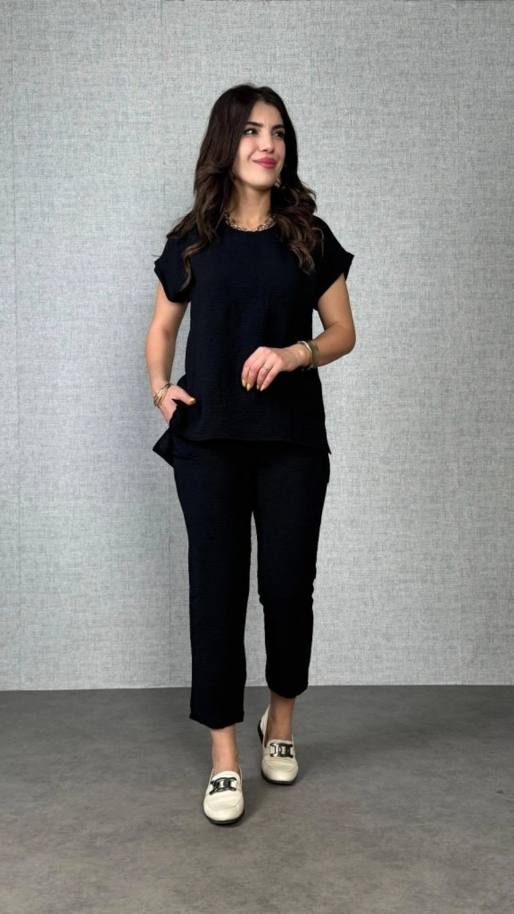 Kadın Kısa Kollu Yuvarlak Yaka Aerobin Bluz Ve Pantolon Ikili Takım