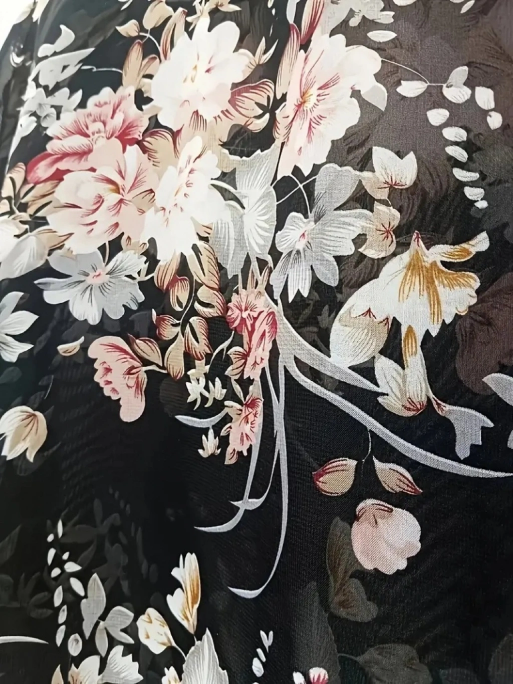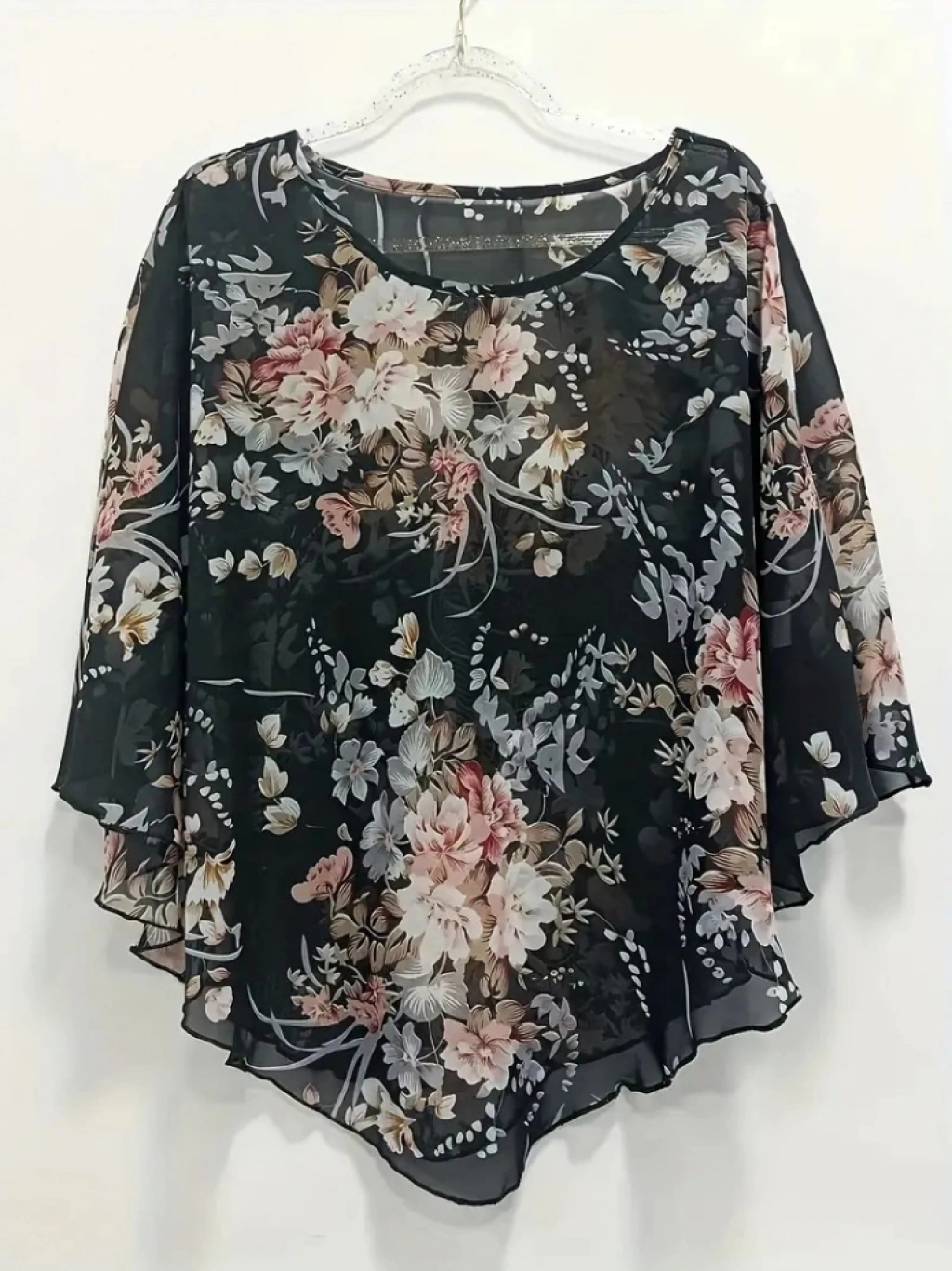 Kadın Kısa Kollu Yuvarlak Yaka çiçek Baskılı Asimetrik Kesim şifon Bluz