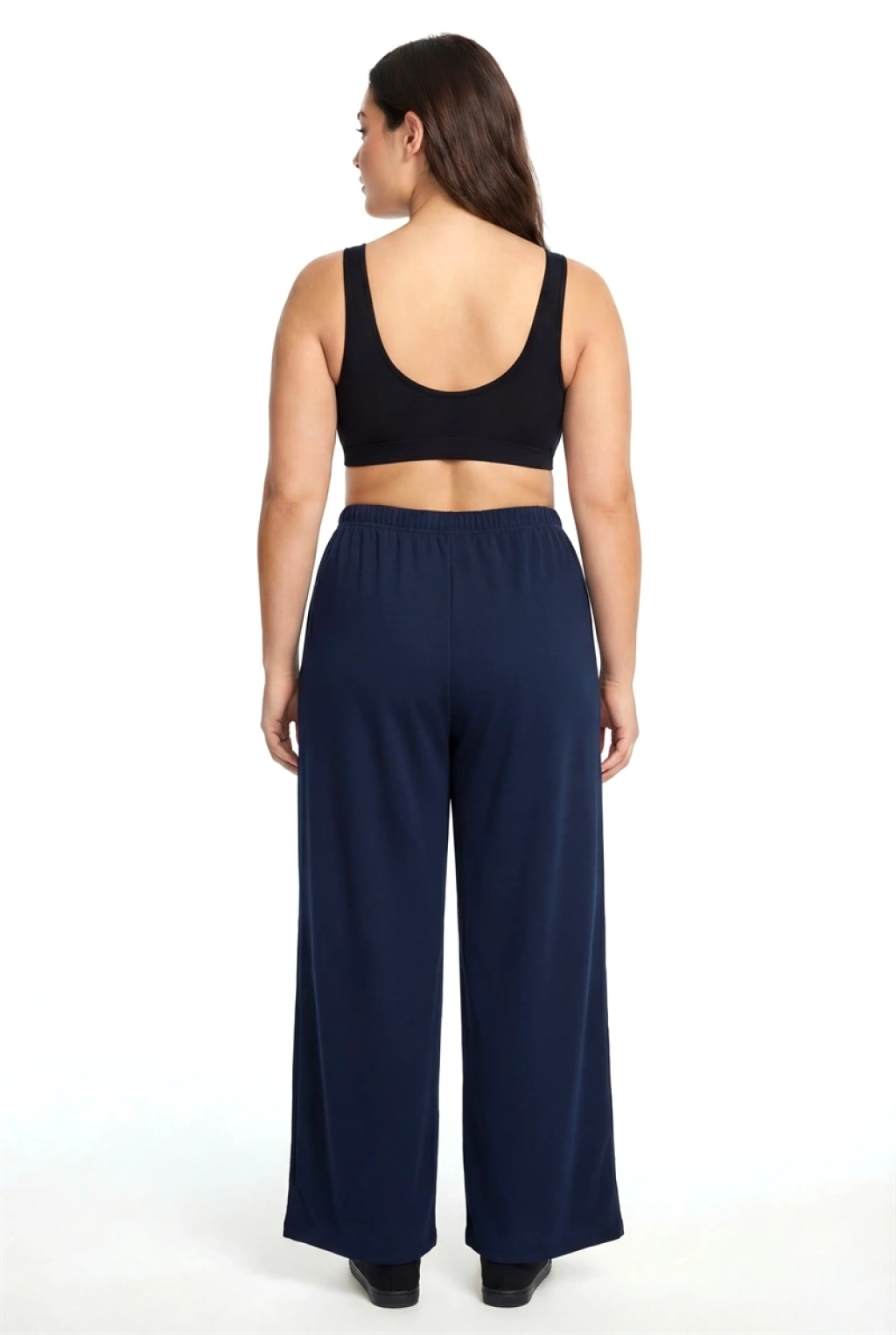 Büyük beden uyumlu tasarımı hareket özgürlüğü sunarken, esnek bel yapısı gün boyu rahat kullanım sağlar. Dokulu kumaş detayı ürüne modern bir görünüm kazandırırken lacivert rengin zamansız şıklığı her kombinle uyum sağlar.