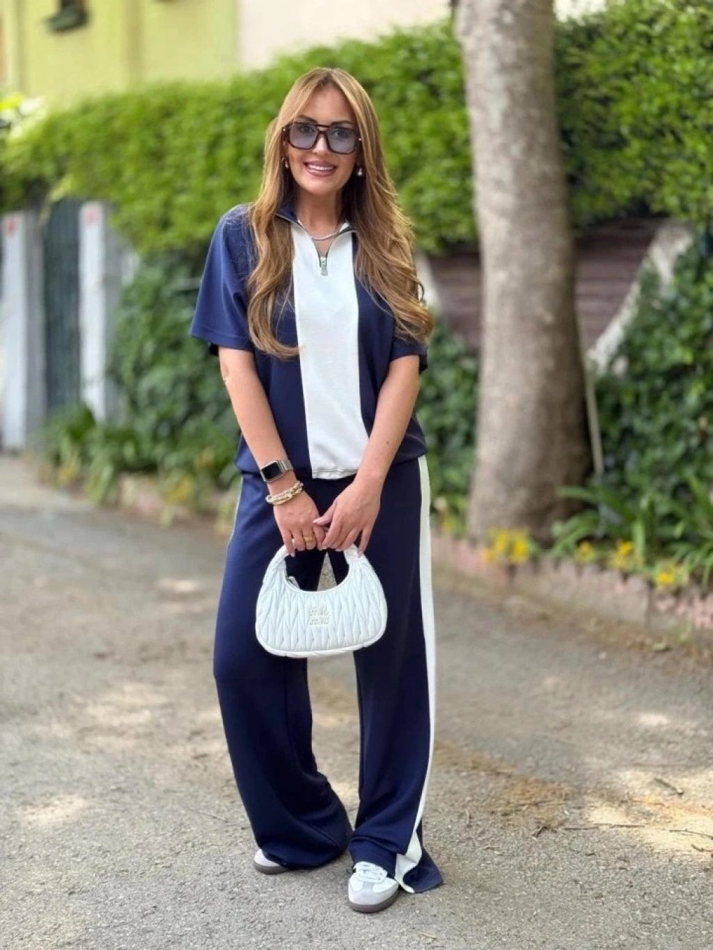 Kadın Modal Kumaş Yakası Fermuarlı şerit Detaylı Takım