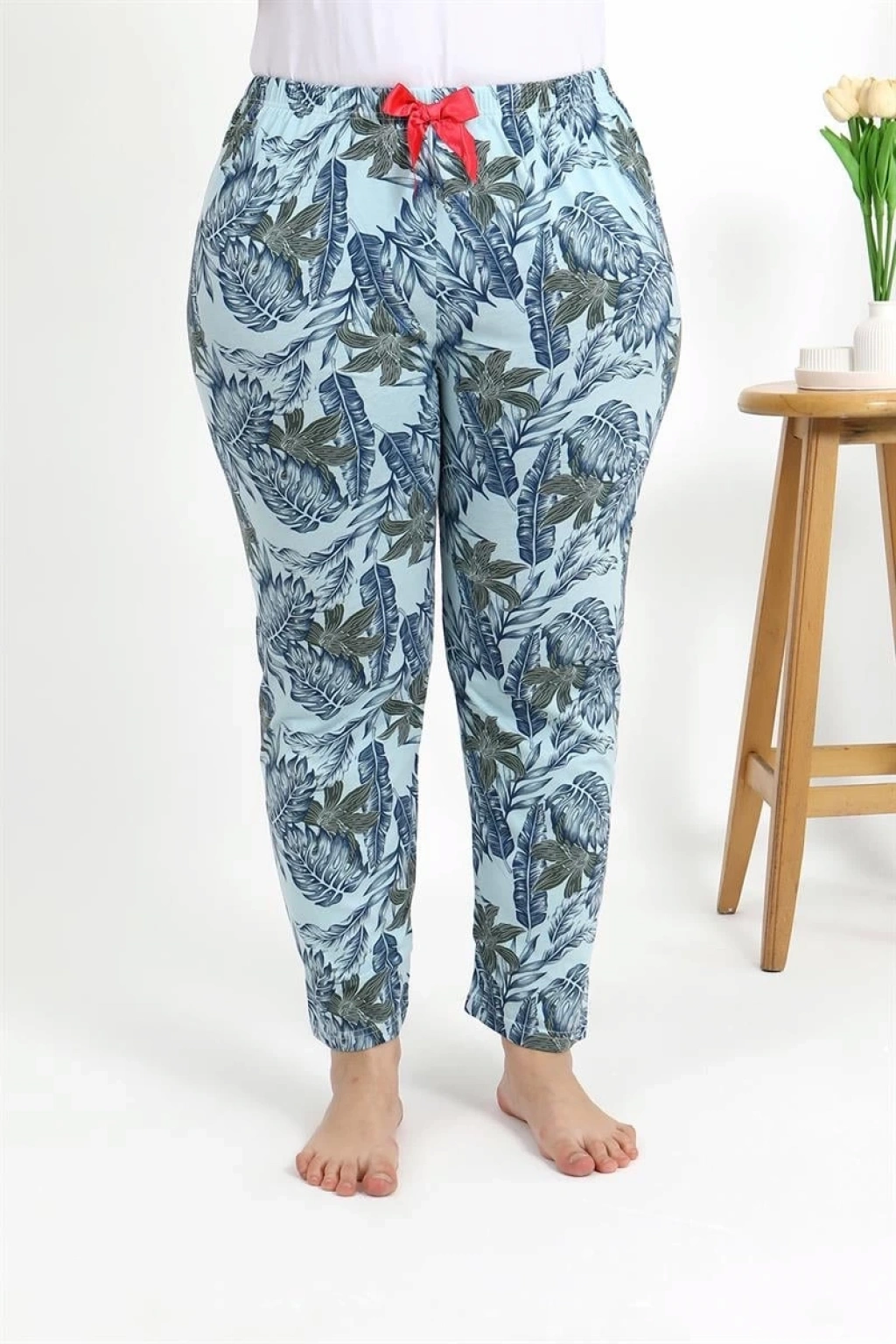 Pamuklu kumaşıyla konforu ve rahatlığı bir arada sunan Çamaşır Kenti Kadın Pamuklu Büyük Beden Alt Pijama Mavi, şıklığıyla öne çıkıyor.