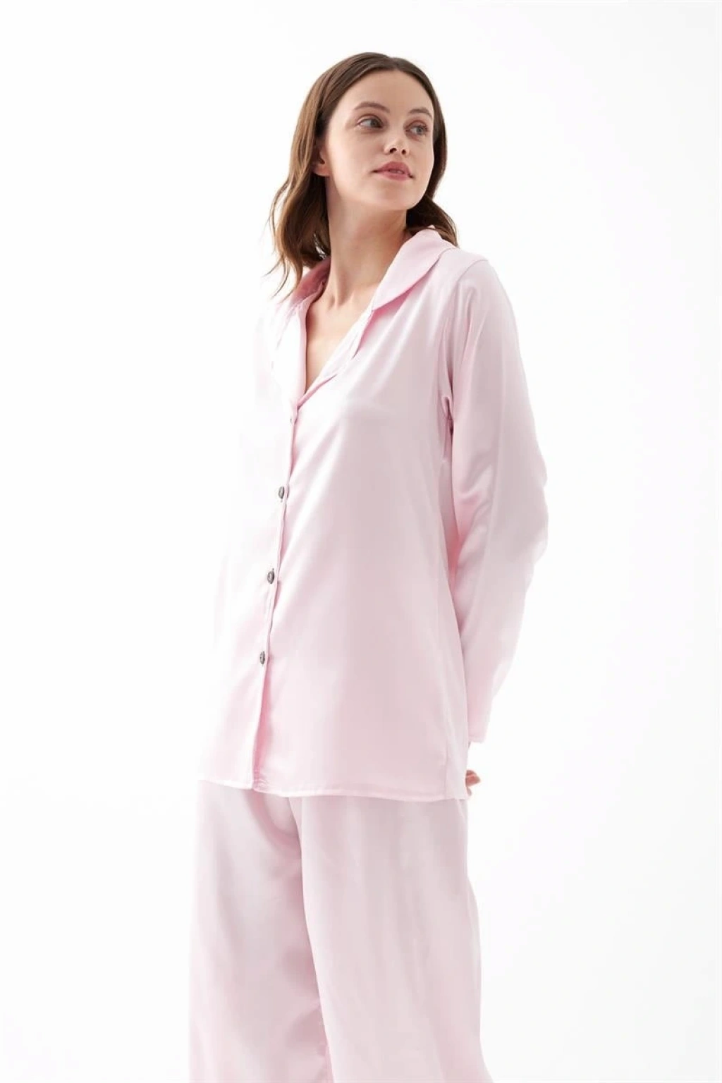 Konforlu yapısı ve zarif görünümüyle öne çıkan Kadın Pembe Oversize Saten Pijama Takımı, akıcı saten kumaşı sayesinde gün boyu rahat ve şık bir kullanım sunar. Hafif parlak yüzeyi modern bir görünüm kazandırırken oversize kesimi vücuda dökümlü bir form sağlayarak hareket özgürlüğü sunar.
