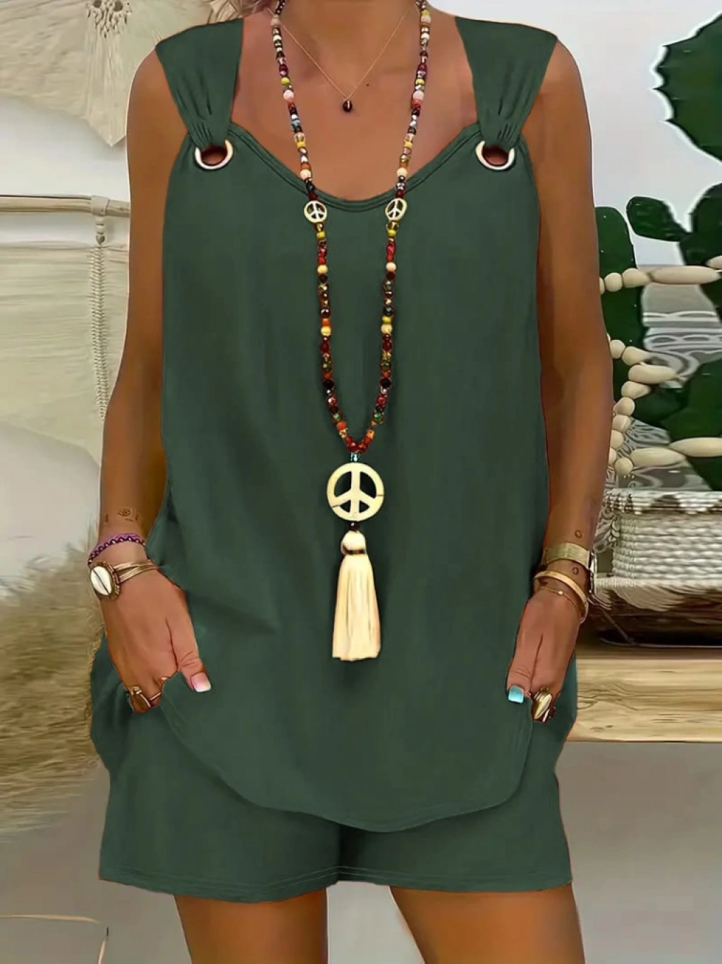 Kadın Sıfır Kol V Yaka Kuş Gözü Detay Bluz Short Aerobin Ikili Takım