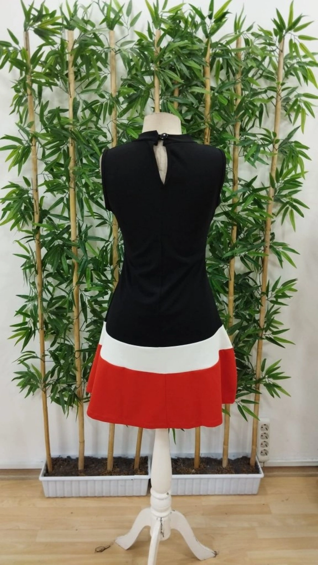Kadın Sıfır Kol Yarı Balıkçı Yaka şerit Detaylı Ithal Krep Elbise