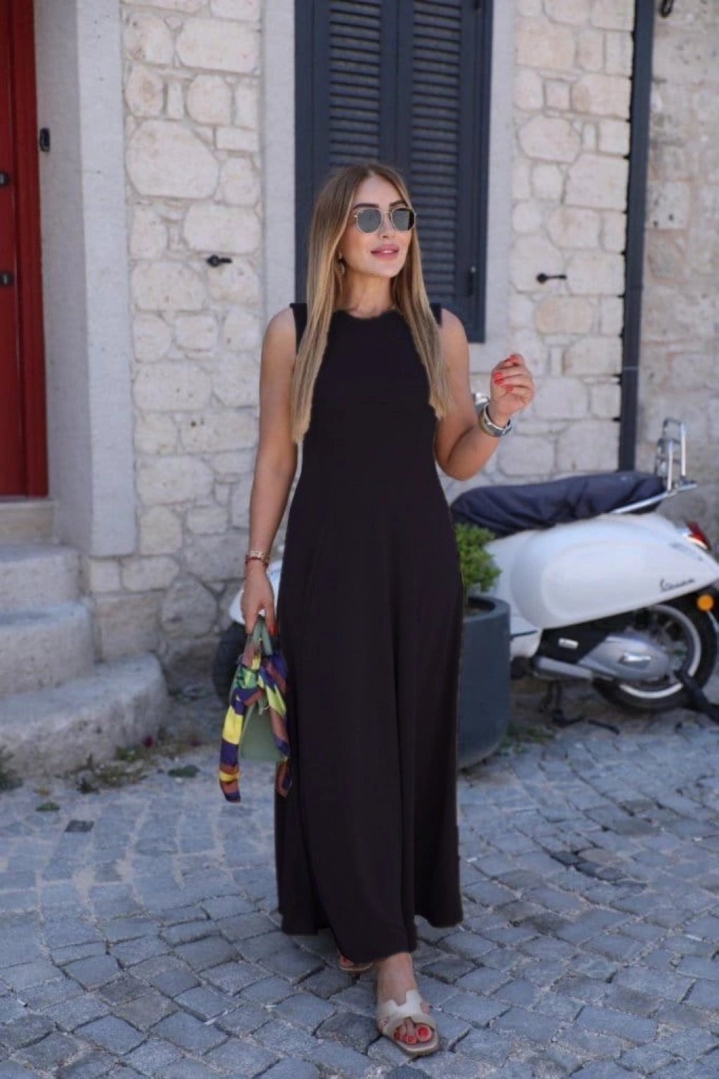Kadın Sıfır Kollu Bisiklet Yaka Viskon Elbise