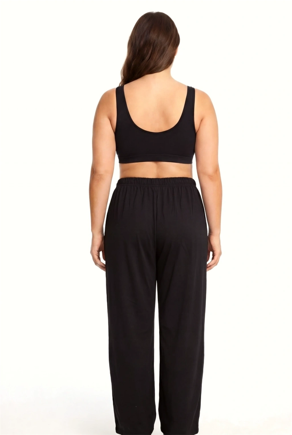 Konforu ve şıklığı bir araya getiren Kadın Siyah Dokulu Büyük Beden Cepli Pijama Altı, gün boyu rahat kullanım sunan yumuşak dokulu kumaşıyla ev giyiminin vazgeçilmez parçalarından biridir.
