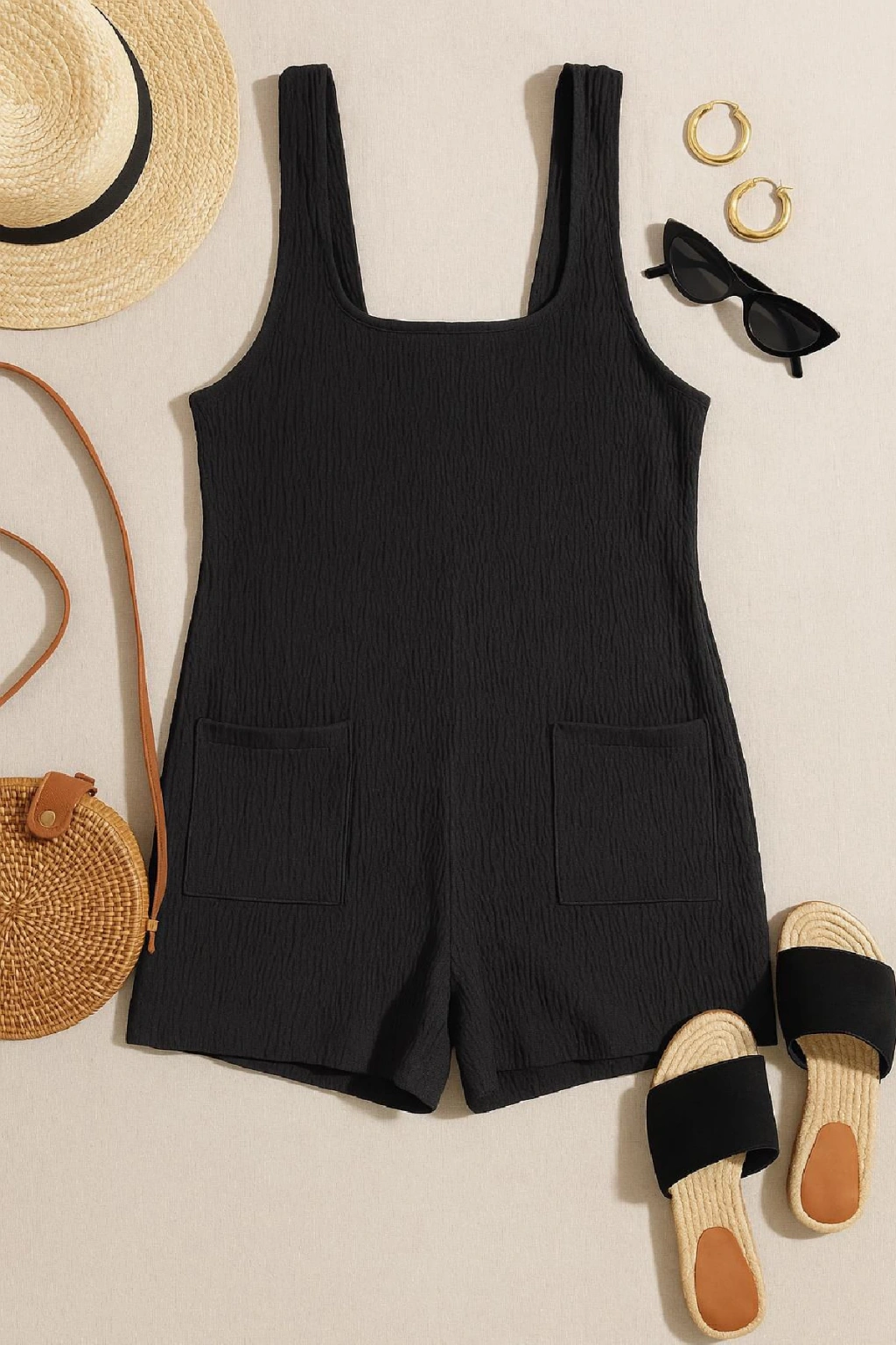 Cepli plaj elbisesi olarak tasarlanan bu ürün, pratik kullanımıyla dikkat çeker. Yan cepler hem modern bir görünüm kazandırır hem de günlük kullanımda küçük eşyalarınızı taşıma kolaylığı sağlar. Tatilde, deniz kenarında ya da günlük şehir stilinde kombinleyebileceğiniz bu tulum, tek parçada hem rahat hem de şık bir alternatif sunar.