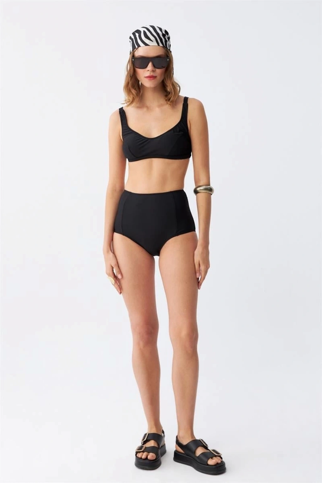 Çamaşır Kenti'nin özel tasarımı olan Kadın Siyah Pedli Kare Yaka Yüksek Bel Bikini Takımı, plajda şıklığı ve konforu bir arada sunar.