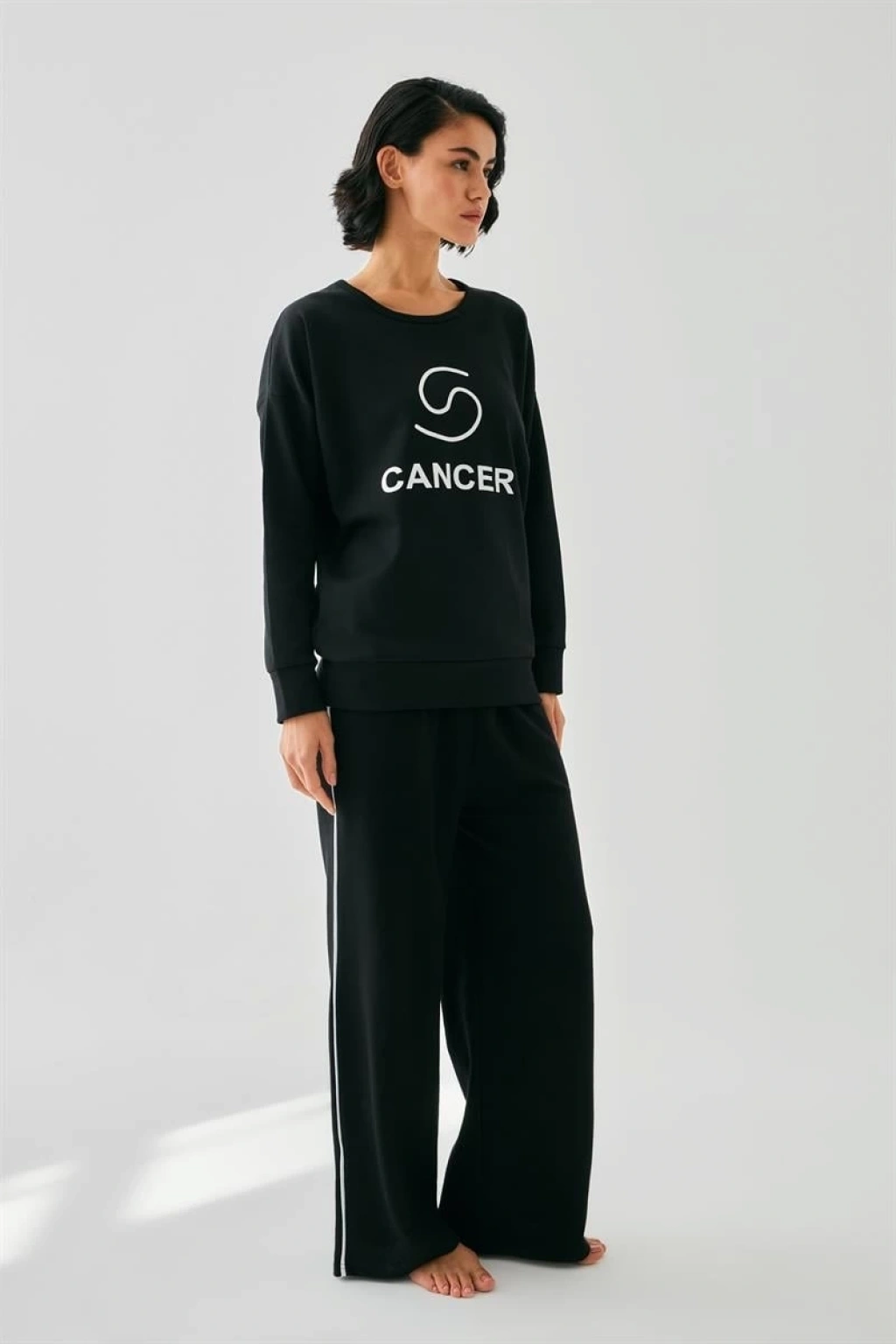 Yengeç burcunun şefkatli, duygusal ve koruyucu enerjisini yansıtan bu özel tasarım; evdeki huzuru zarif bir stille buluşturur. ’in astroloji koleksiyonundan siyah oversize eşofman takımı, sakinliğini ve zarafetini ön plana çıkarır.