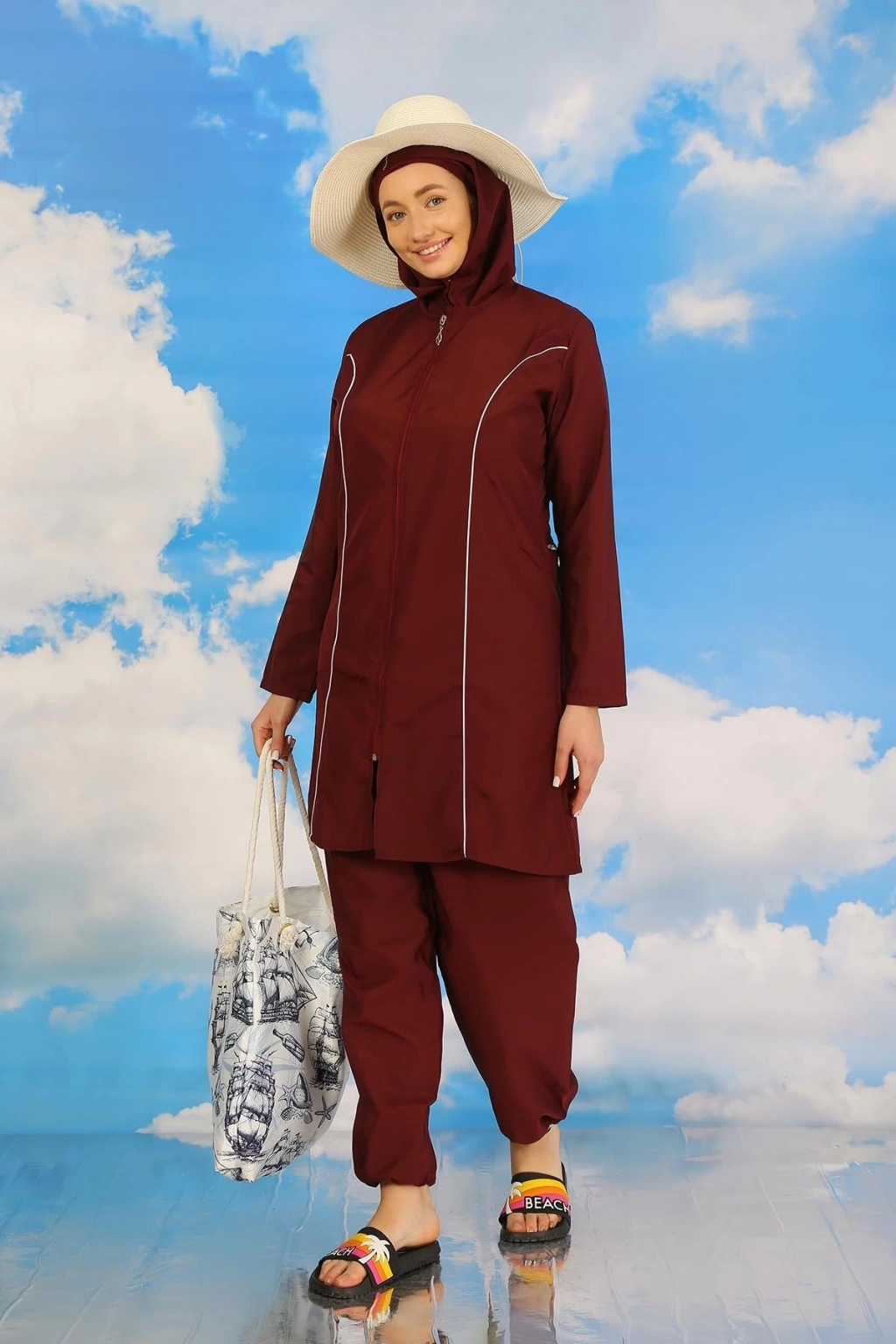 Eğer siz de plajda tesettürlü bir şekilde şıklığı ve rahatlığı bir arada arıyorsanız, Çamaşır Kenti'nin Tam Tesettür Bordo Mayo'sunu tercih edebilirsiniz.