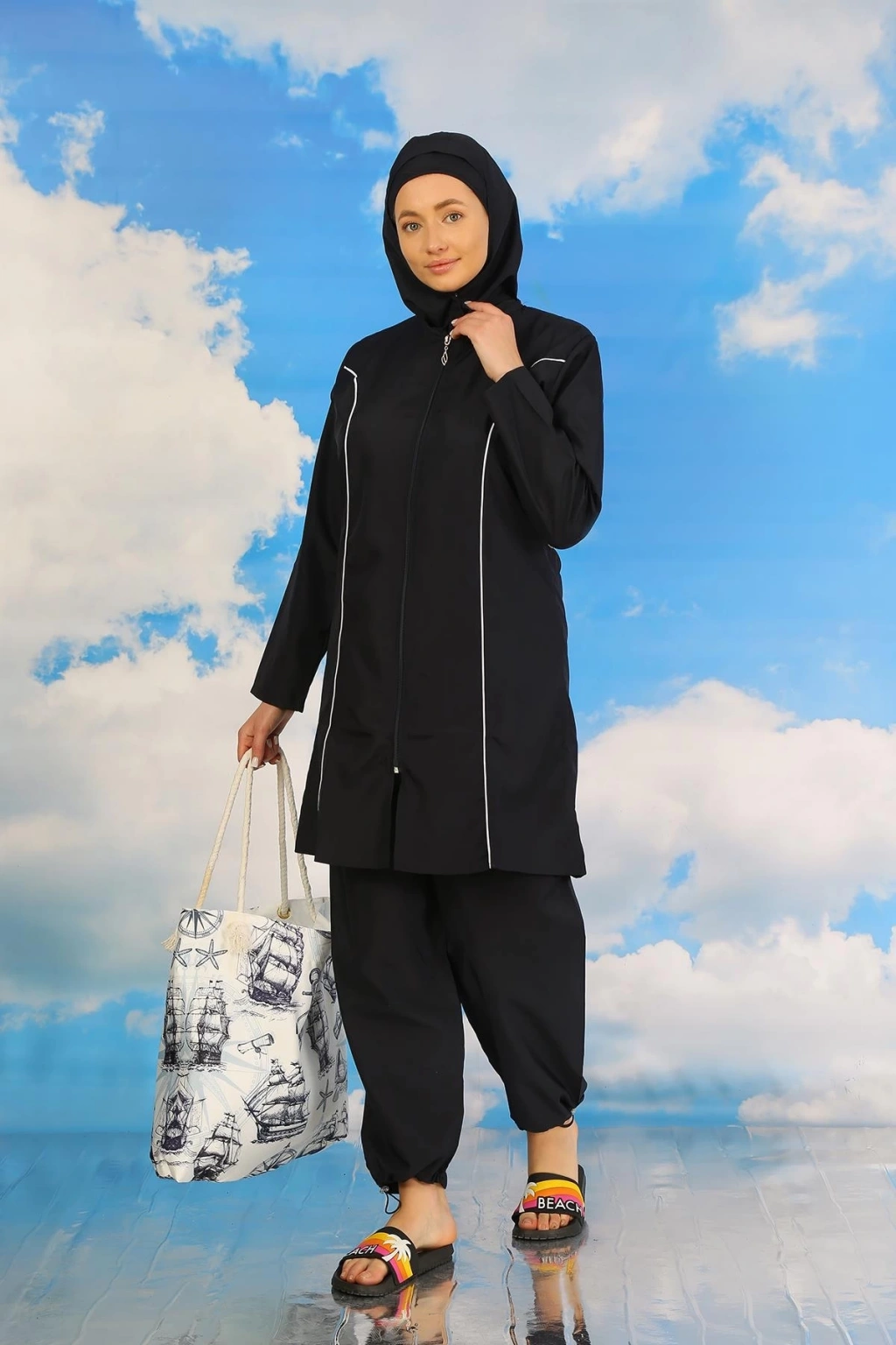 Eğer siz de plajda tesettürlü bir şekilde şıklığı ve rahatlığı bir arada arıyorsanız, Çamaşır Kenti'nin Tam Tesettür Lacivert Mayo'sunu tercih edebilirsiniz.
