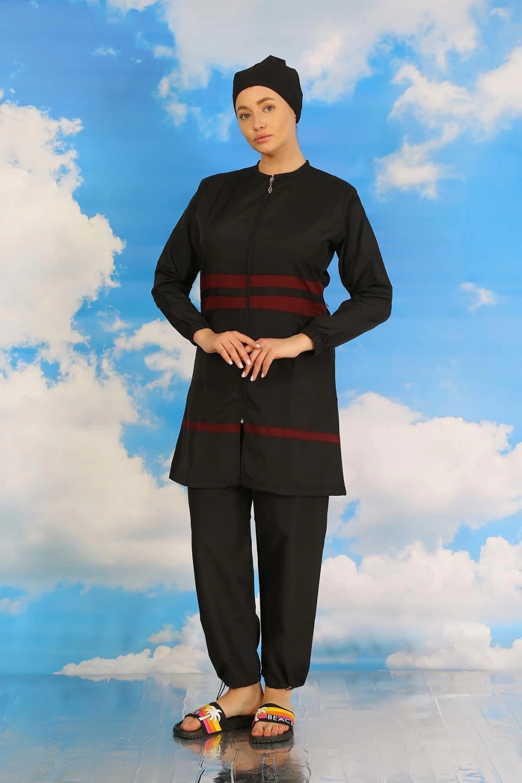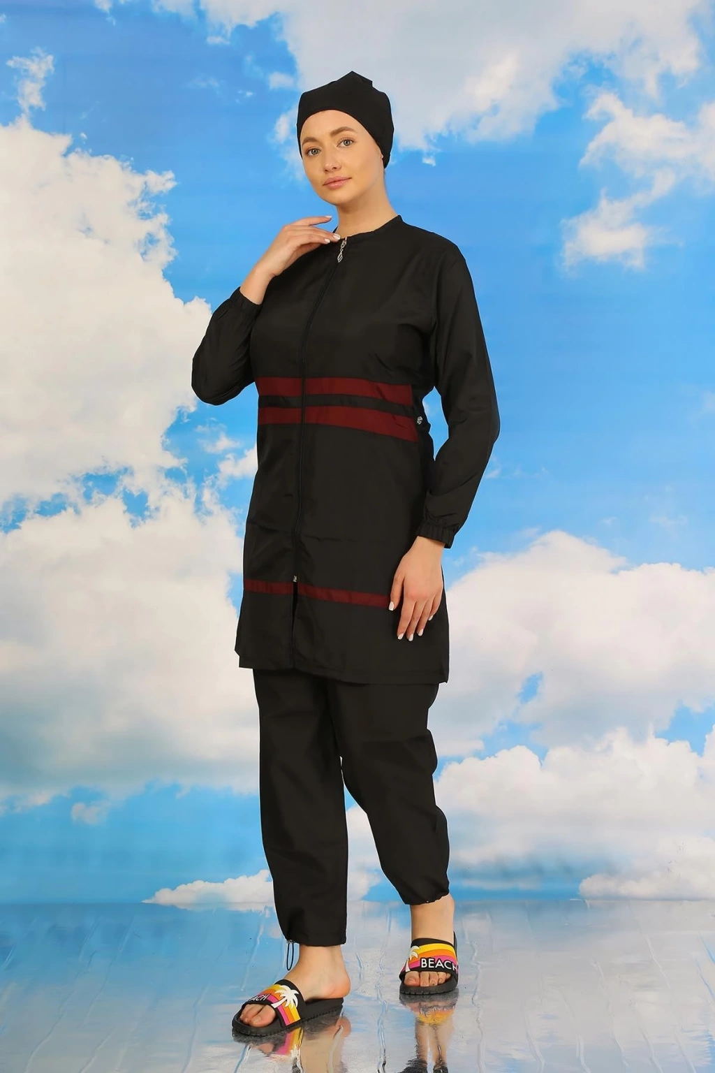 Çamaşır Kenti markasının özel tasarımı olan Kadın Tam Tesettür Mayo Siyah ile plajda şıklık ve rahatlığı bir arada yaşayacaksınız.