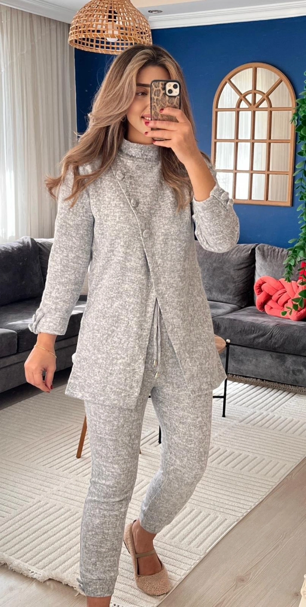 Kadın Uzun Kollu Balıkçı Yaka önden Düğmeli Bluz Ve Pantolon Yumoş Ikili Takım