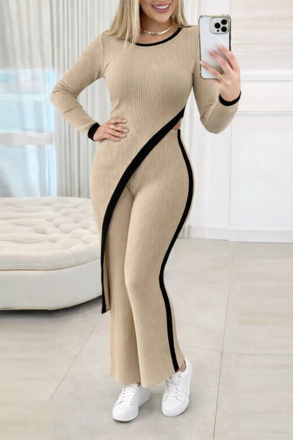 Kadın Uzun Kollu Bisiklet Yaka Asimetrik Kesim Bluz şardonlu Kaşkorse Bluz Ve Pantolon Ikili Takım
