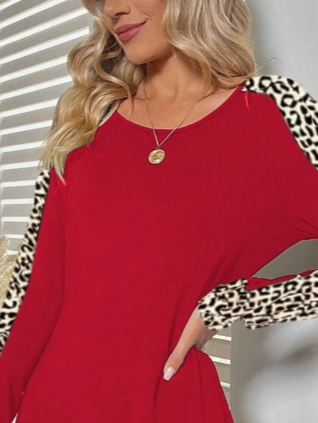 Kadın Uzun Kollu Bisiklet Yaka Kollar Leopar Detay Iki Iplik Mini Boy Elbise
