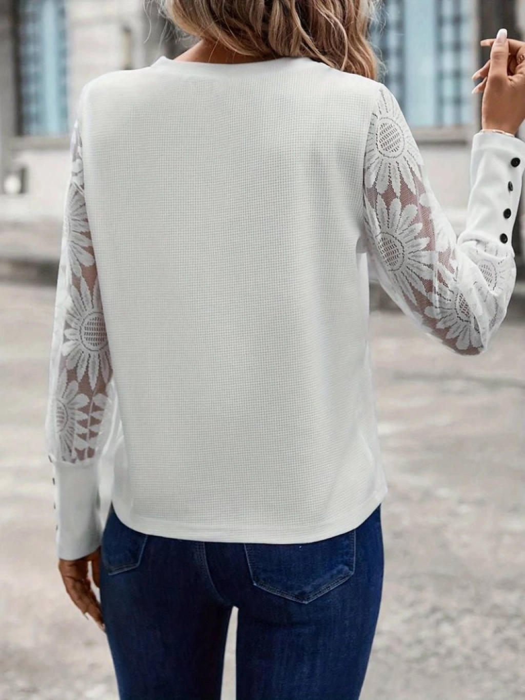 Kadın Uzun Kollu Bisiklet Yaka Kolları çiçekli Waffle Bluz