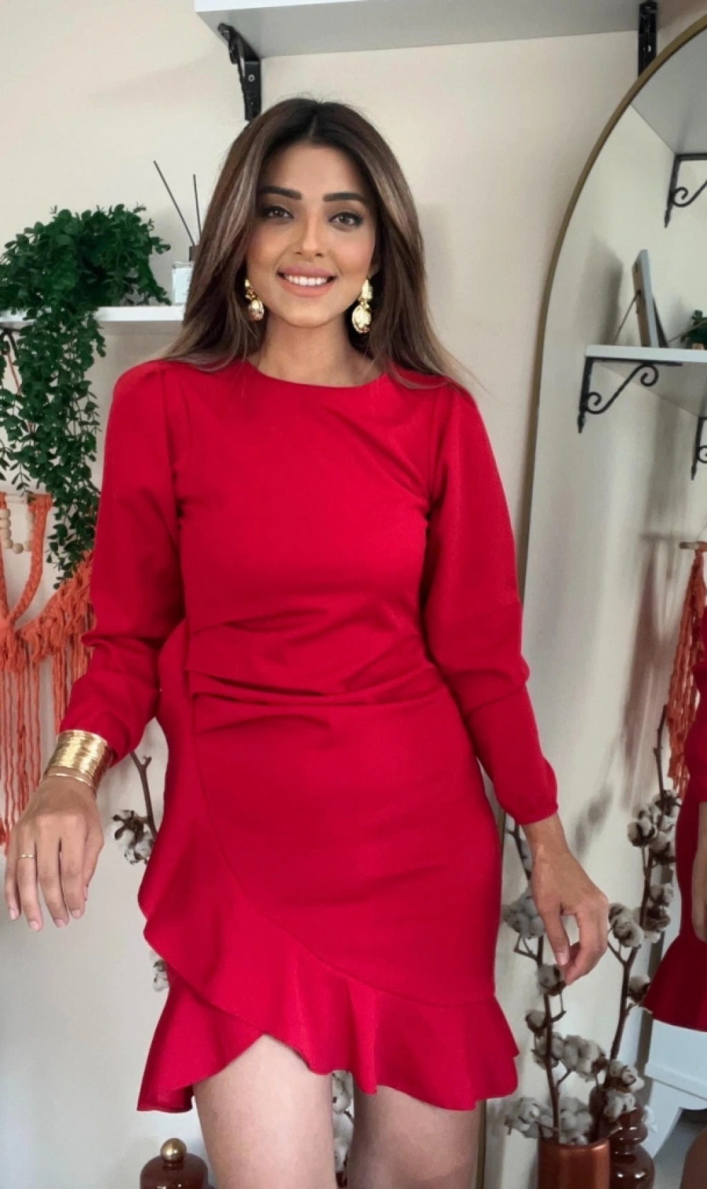 MARSiLYAN- Kadın Uzun Kollu Bisiklet Yaka önden Volanlı Ithal Krep Elbise