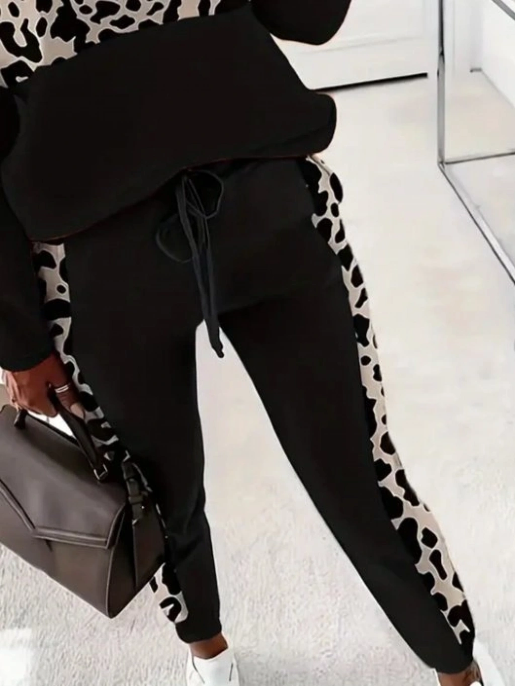 Kadın Uzun Kollu Fermuarlı Karışık Desenli Viskon Iki Iplik Bluz Ve Pantolon Ikili Takım