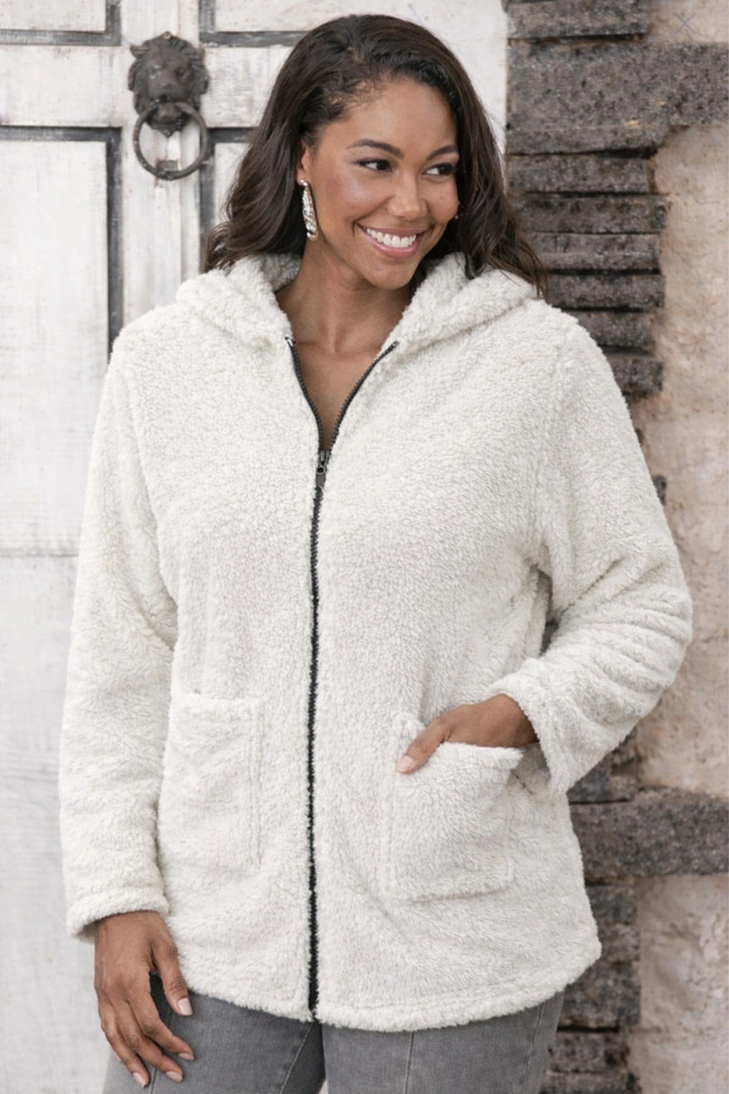 Kadın Uzun Kollu Kapşonlu önden Fermuarlı Cepli Welsoft Ceket
