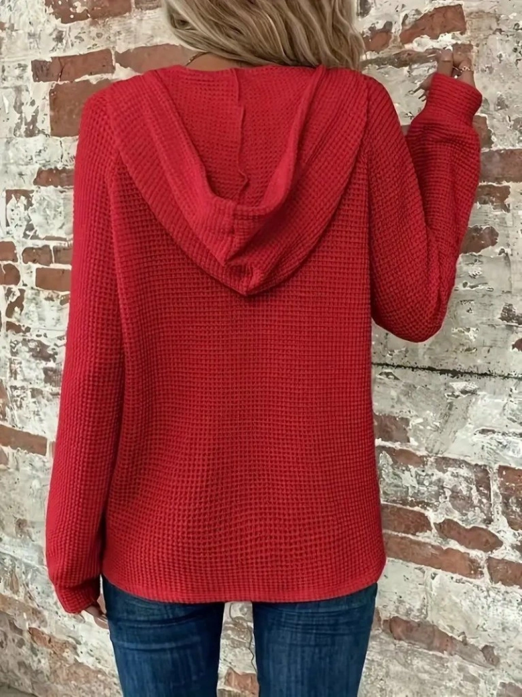 Kadın Uzun Kollu Kapşonlu önü Düğmeli Ve Bağcıklı Waffle Bluz