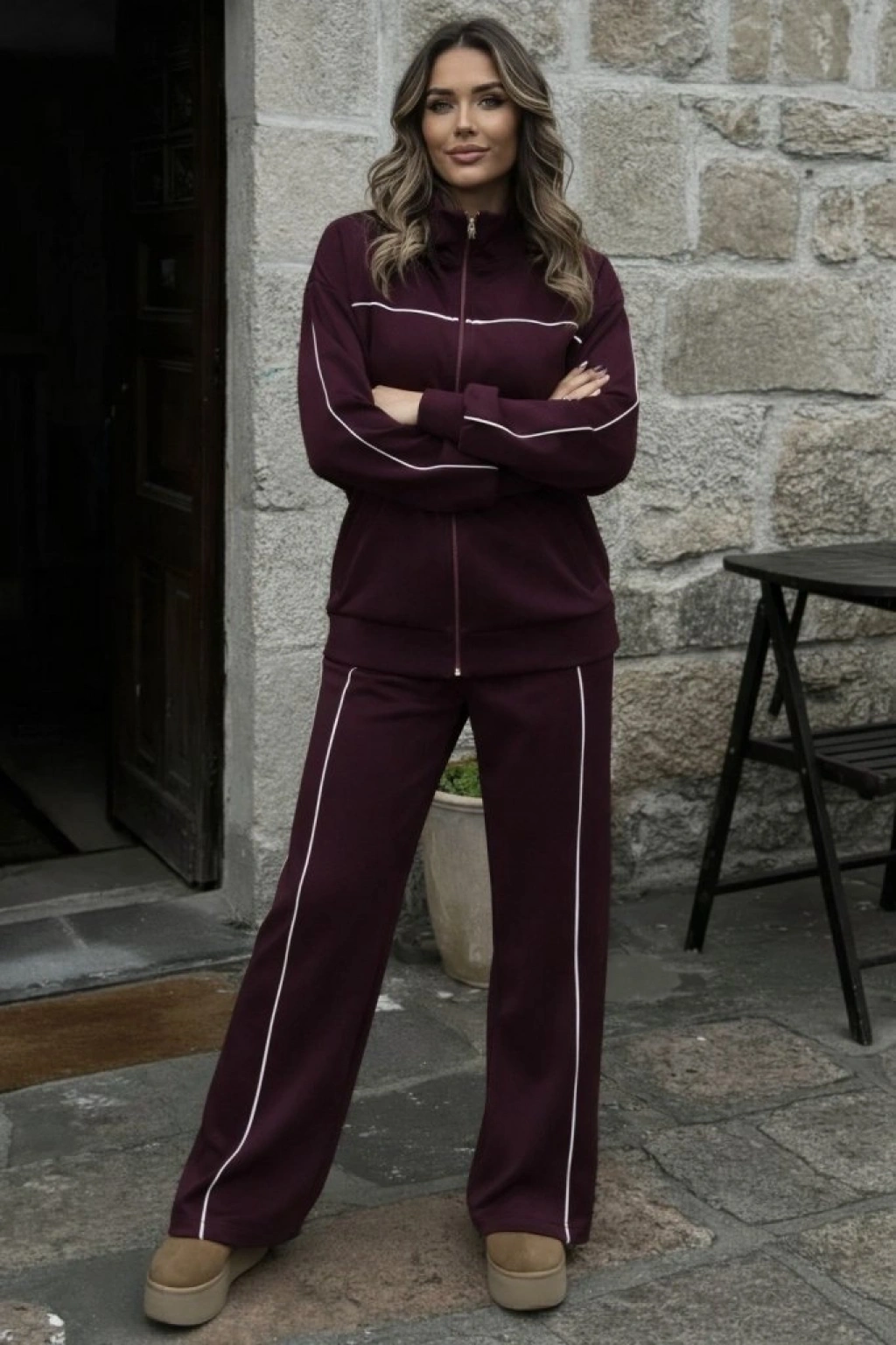 Kadın Uzun Kollu önden Fermuarlı Bluz Ve Pantolon Modal Ikili Takım