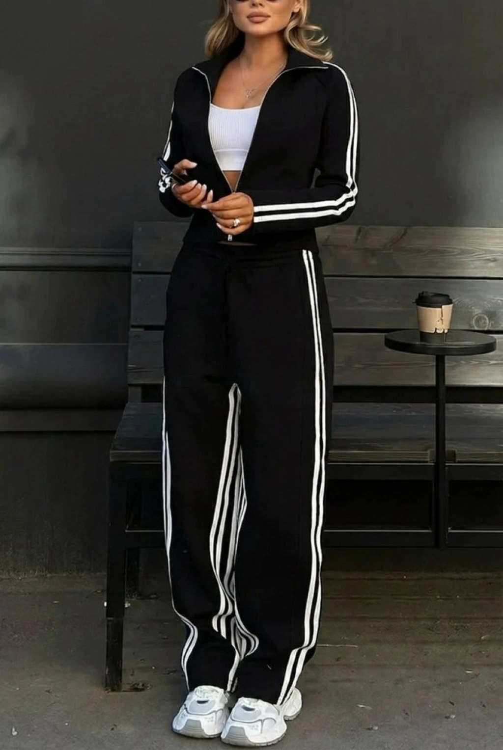Kadın Uzun Kollu önden Fermuarlı Kısa Viskon Iki Iplik Bluz Ve Pantolon Ikili Takım