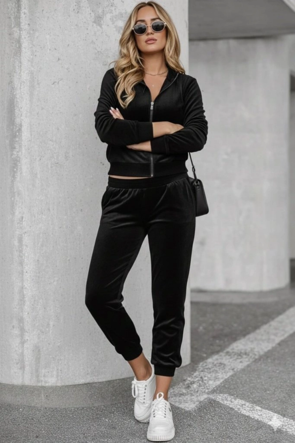 Kadın Uzun Kollu önden Fermuarlı Krop Kadife Ceket Ve Pantolon Ikili Takım