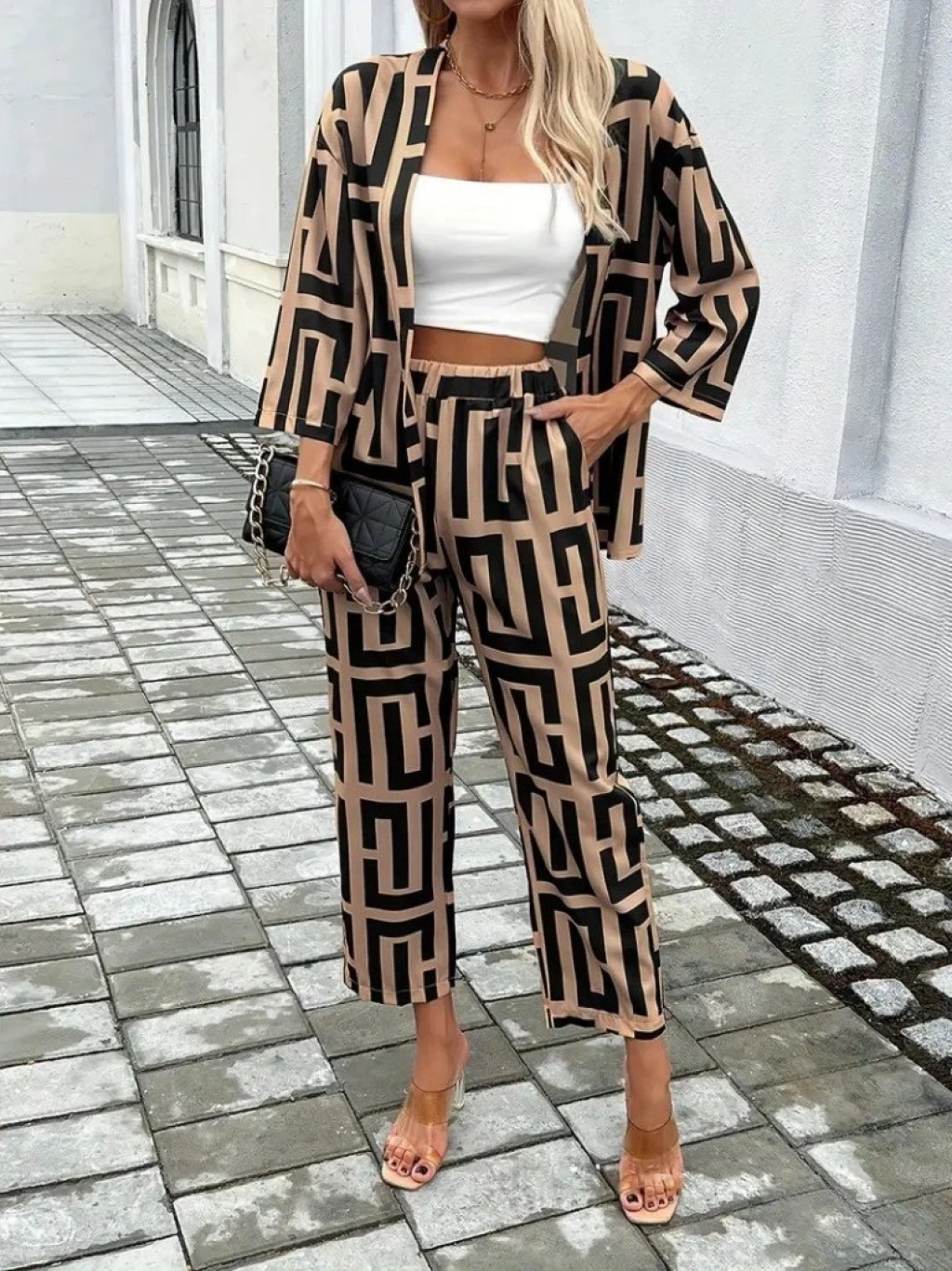 Kadın Uzun Kollu önü Açık Desenli Iki Iplik Ceket Ve Pantolon Ikili Takım