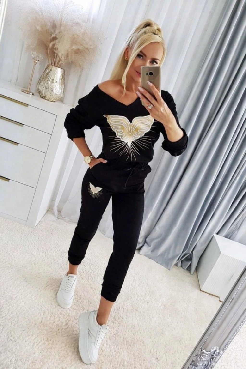 Kadın Uzun Kollu V Yakalı Desenli Viskon Iki Iplik Bluz Ve Pantolon Ikili Takım
