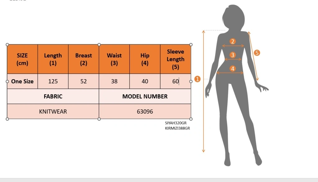 Modelin Ölçüleri: Boy:165, Kg:55, Göğüs:90, Bel:72, Kalça: 100