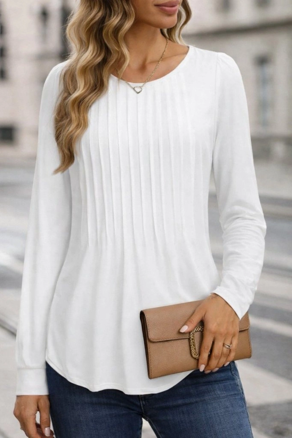 Kadın Uzun Kollu Yuvarlak Yaka Nervürlü Bluz