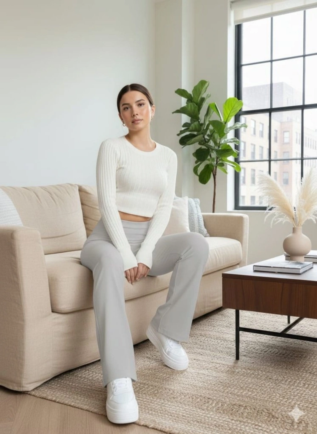 Kadın Yüksek Bel Ispanyol Paçalı Pantolon Tayt