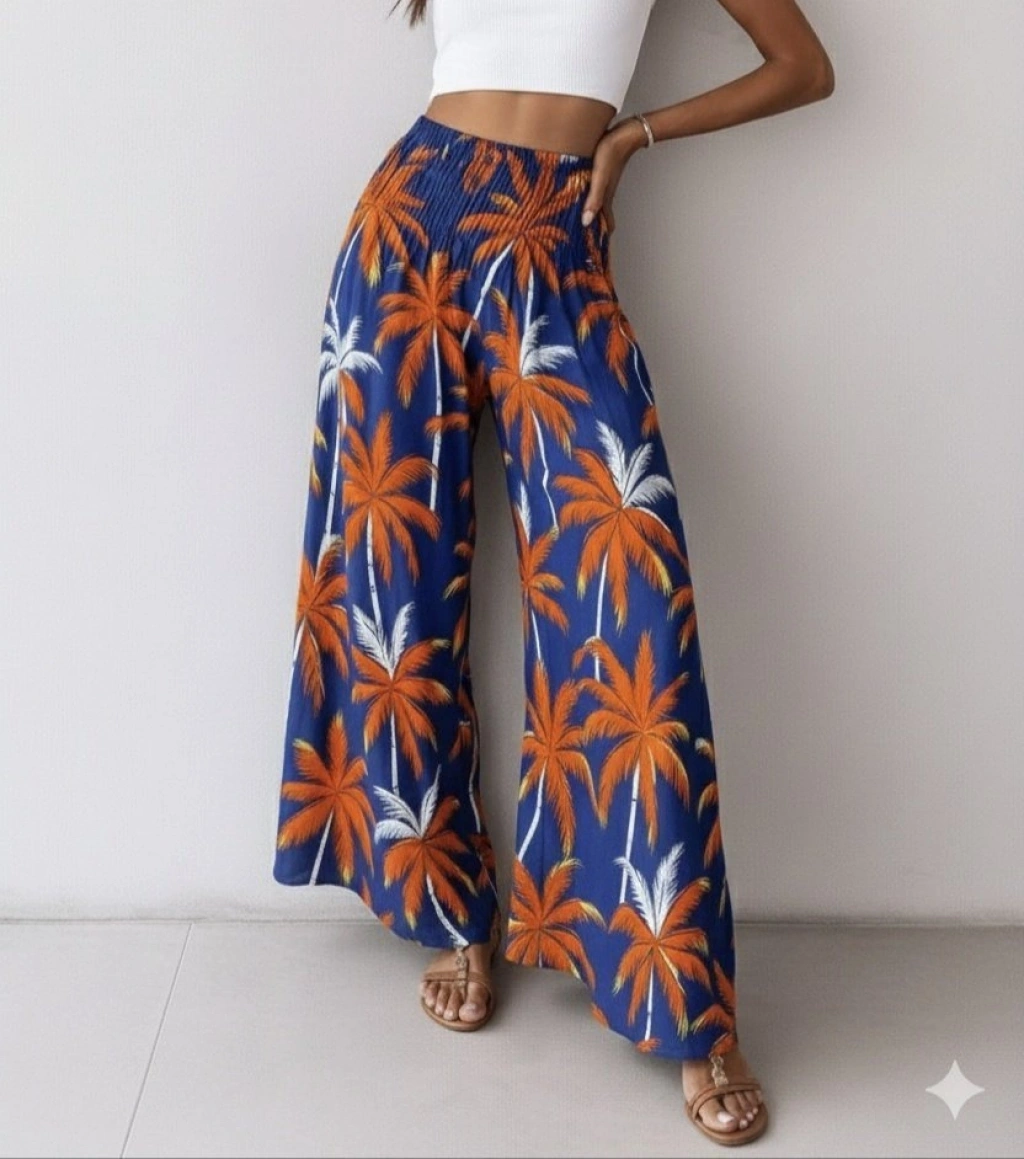 Kadın Yüksek Bel Lastikli Desenli Süprem Pantolon