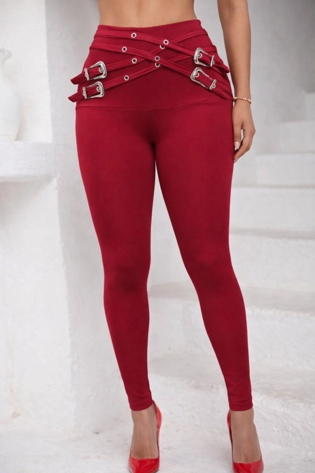 Kadın Yüksek Bel önden çapraz Kuş Göz Detaylı Dalgıç Tayt