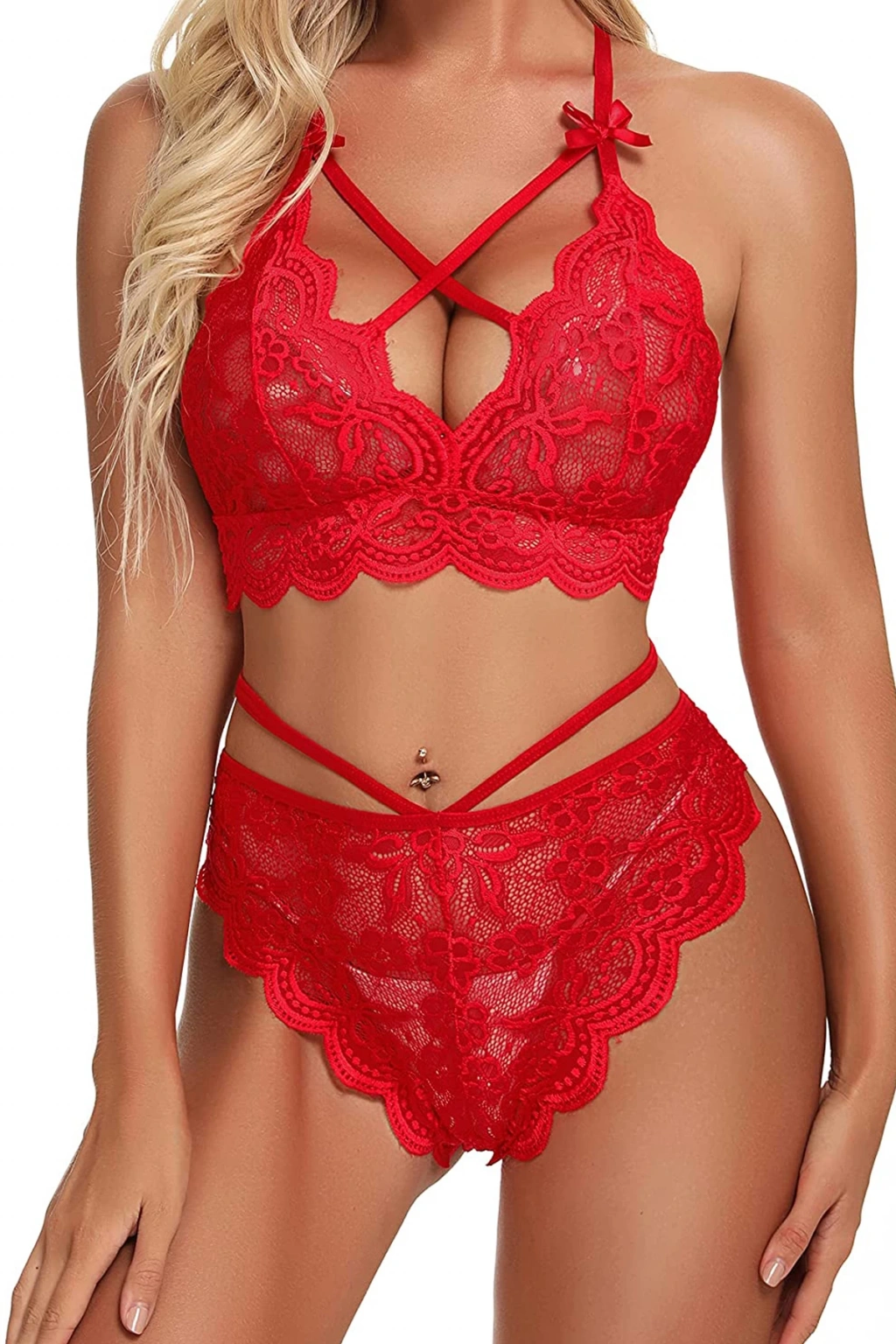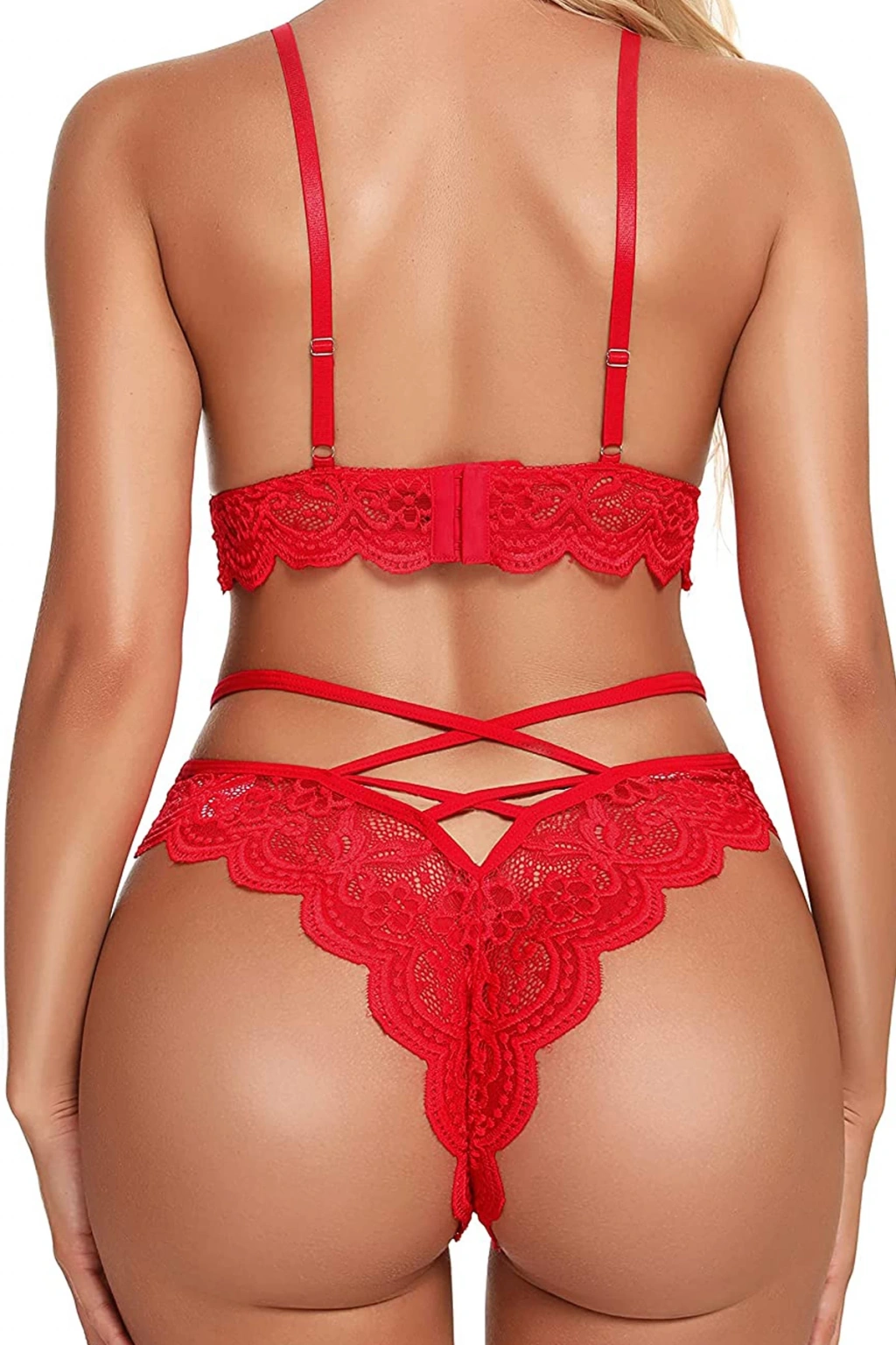 MARSiLYAN- Kırmızı Çapraz Ip Detaylı Şık Sütyen Külot Takım