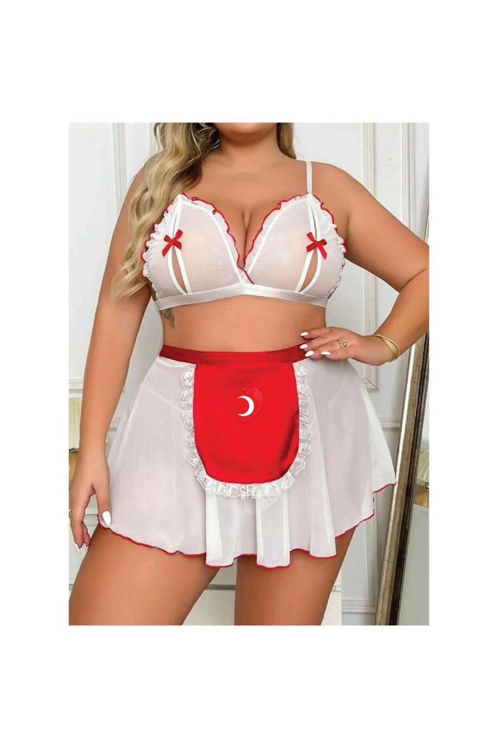 Luna Lora Kırmızı Dantel İşlemeli Kurdelalı Fantezi Gecelik Seksi Kadın Gecelik