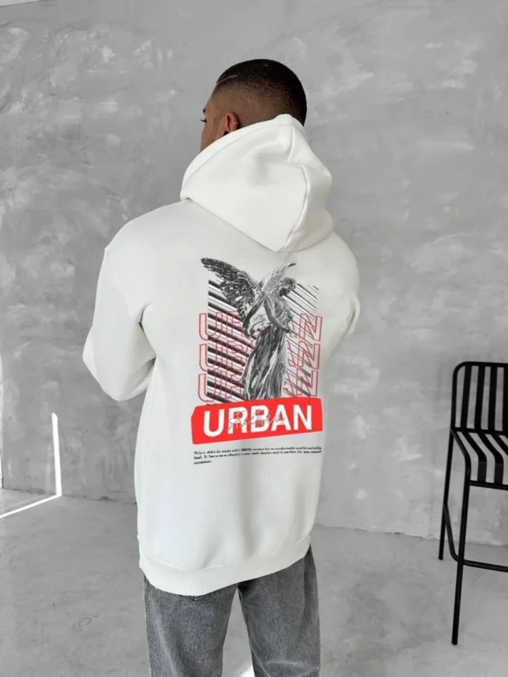 Oversize Üç İplik Kapüşonlu SweatShirt - Beyaz