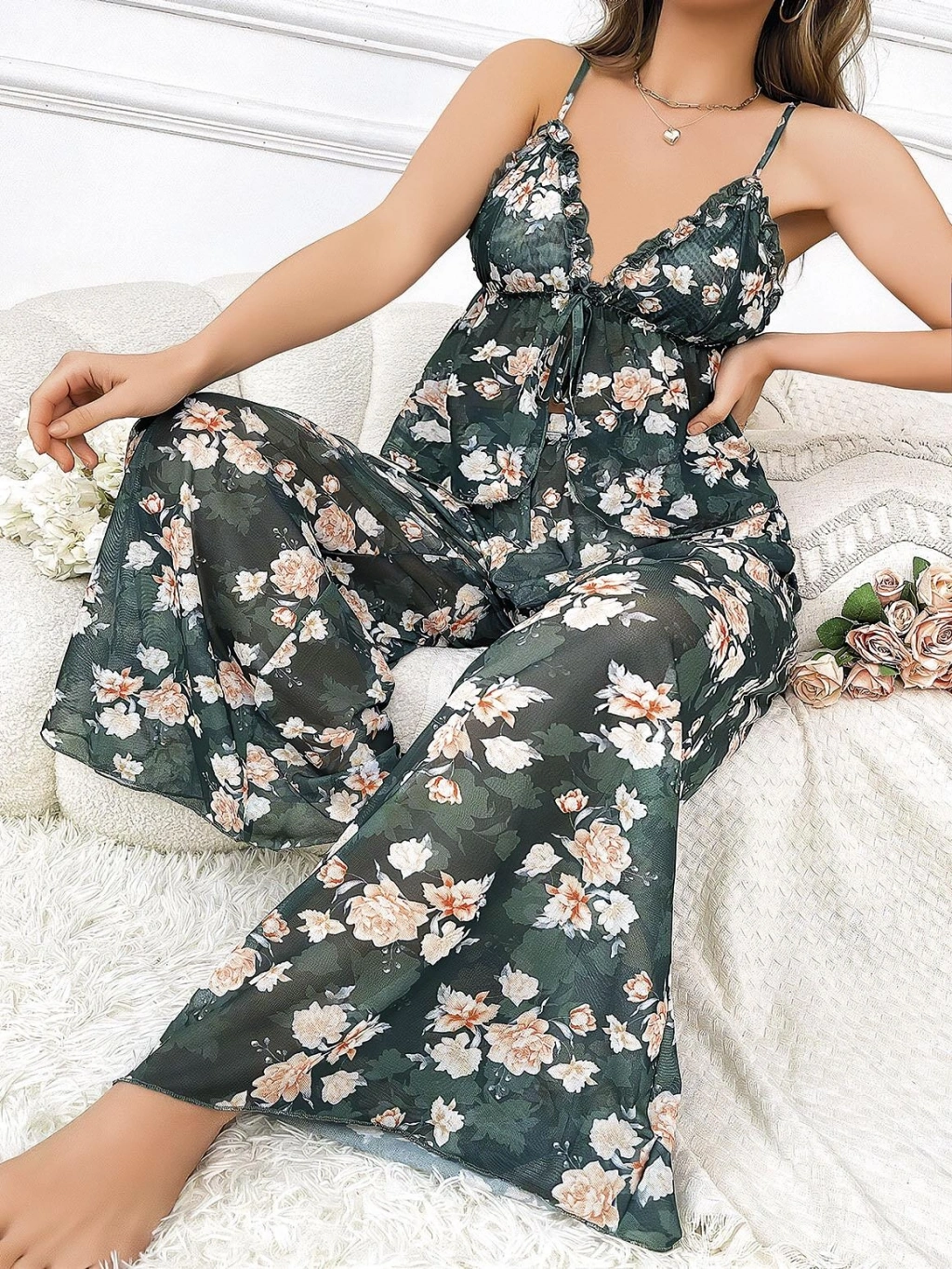 Özel Tasarım Büyük Beden Çiçek Desenli Fırfırlı 2'li Pijama Takımı