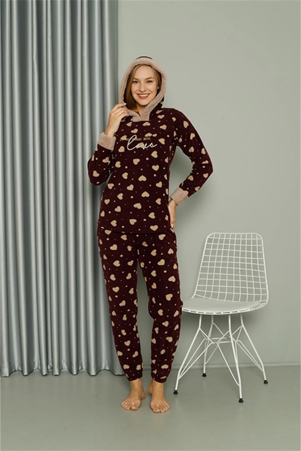 Çamaşır Kenti marka Polar Kadın Kapşonlu Pijama Takımı Bordo, hem şık hem de rahat tasarımıyla dikkat çekiyor. Bu pijama takımı sayesinde kışın soğuk günlerinde sıcacık kalabilirsiniz.