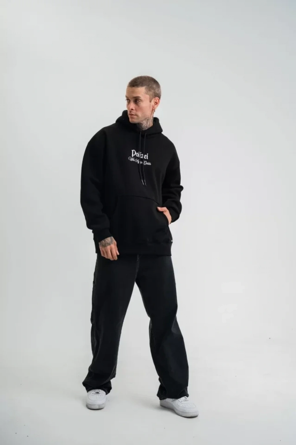 MARSiLYAN- POLIZEI Premium Kalite Kapşonlu Dijital Patchli SweatShirt - Siyah