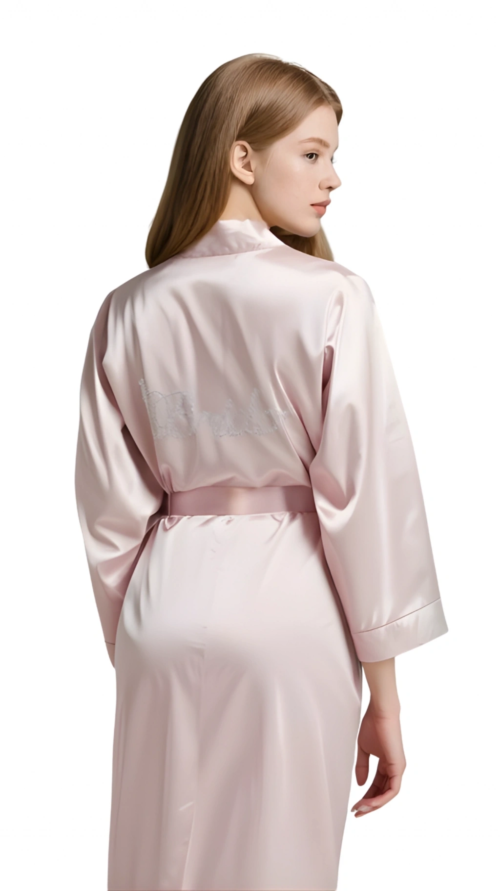 Pudra Saten Bride Sabahlık Zarif Kadın Ev Giyim