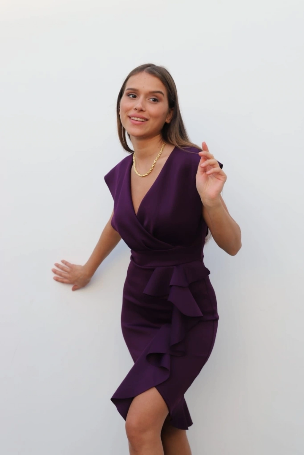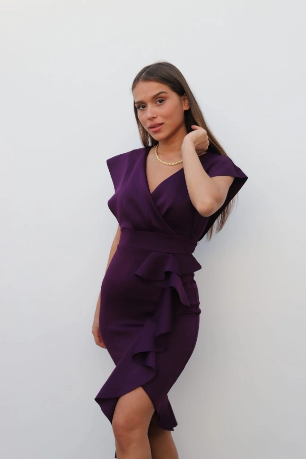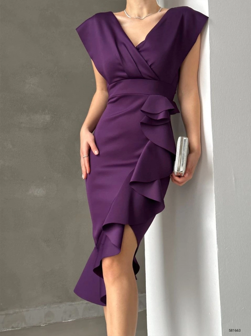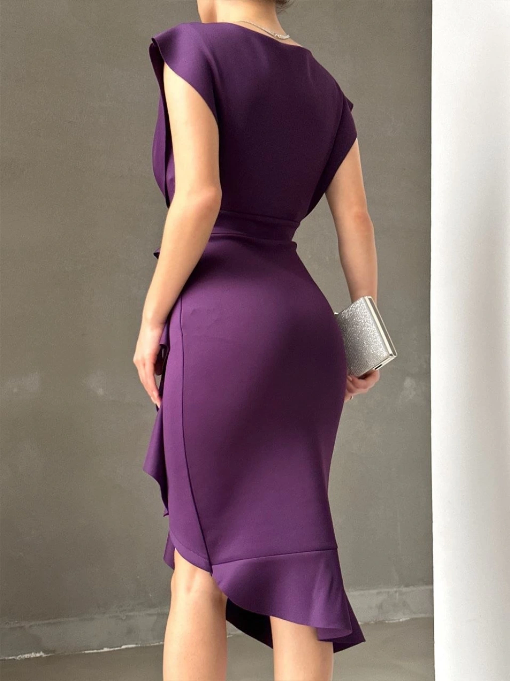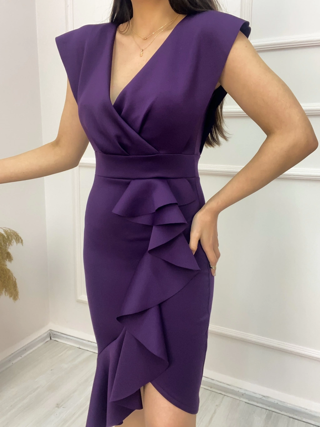 MARSiLYAN- Scuba Kumaş Önü Fırfırlı Midi Boy Elbise